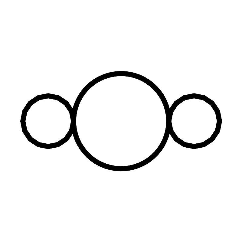 <svg width="800px" height="800px" viewBox="0 0 48 48" xmlns="http://www.w3.org/2000/svg"><defs><style>.a{fill:none;stroke:#000000;stroke-linecap:round;stroke-linejoin:round;}</style></defs><circle class="a" cx="24" cy="24" r="9.44"/><circle class="a" cx="9.53" cy="24" r="5.03"/><circle class="a" cx="38.47" cy="24" r="5.03"/></svg>