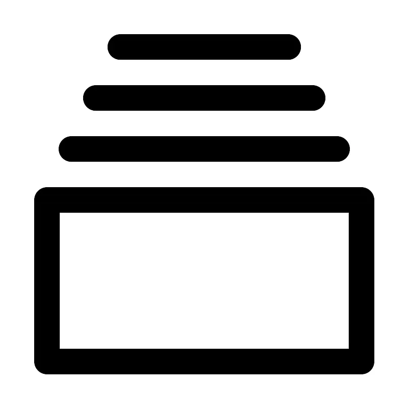 <svg width="800px" height="800px" viewBox="0 0 50.8 50.8" xmlns="http://www.w3.org/2000/svg" xml:space="preserve"><path d="M5.821 24.871h39.158v20.108H5.821z" style="fill:none;stroke:#000000;stroke-width:3.175;stroke-linecap:round;stroke-linejoin:round;stroke-dasharray:none;stroke-opacity:1"/><path d="M14.949 5.82h20.902M8.864 18.52h33.072m-30.03-6.35h26.988" style="fill:#000000;stroke:#000000;stroke-width:3.175;stroke-linecap:round;stroke-dasharray:none;stroke-opacity:1"/></svg>