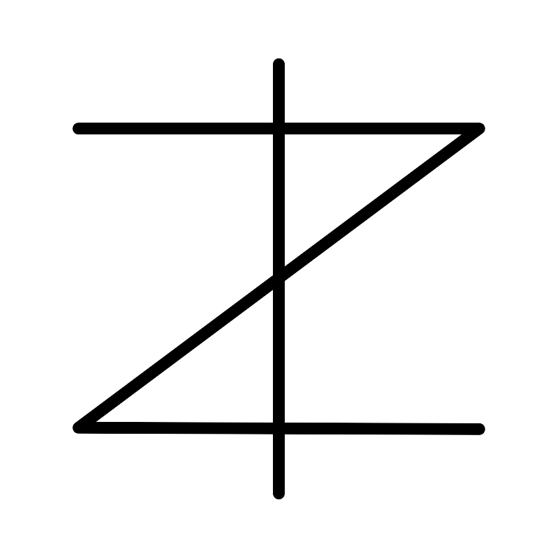 <svg width="800px" height="800px" viewBox="0 0 48 48" id="a" xmlns="http://www.w3.org/2000/svg"><defs><style>.b{fill:none;stroke:#000000;stroke-linecap:round;stroke-linejoin:round;}</style></defs><path class="b" d="M6.7333,11.05H41.2667L6.7333,36.8267l34.5333,.1233"/><path class="b" d="M24,5.5V42.5"/></svg>