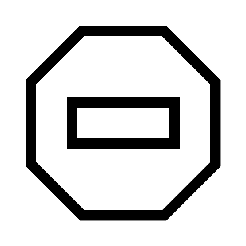 <svg width="800px" height="800px" viewBox="0 0 24 24" role="img" xmlns="http://www.w3.org/2000/svg" aria-labelledby="noEntryIconTitle" stroke="#000000" stroke-width="1" stroke-linecap="square" stroke-linejoin="miter" fill="none" color="#000000"> <title id="noEntryIconTitle">No Entry</title> <polygon points="16 3 21 8 21 16 16 21 8 21 3 16 3 8 8 3"/> <rect width="10" height="4" x="7" y="10"/> </svg>