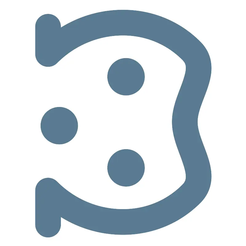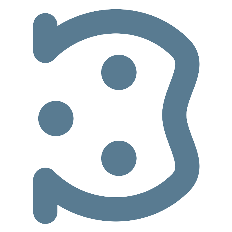 <svg width="800px" height="800px" viewBox="0 0 512 512" xmlns="http://www.w3.org/2000/svg" xmlns:xlink="http://www.w3.org/1999/xlink" aria-hidden="true" role="img" class="iconify iconify--fxemoji" preserveAspectRatio="xMidYMid meet"><path fill="#597B91" d="M99.692 493.598c-14.635 0-26.499-11.864-26.499-26.499v-70.675a26.498 26.498 0 0 1 45.236-18.737c35.461 35.461 82.033 55.848 131.137 57.404c49.314 1.572 95.288-16.394 129.457-50.562c10.408-10.409 11.156-20.265-4.431-61.61c-7.87-20.877-16.791-44.54-16.791-69.575c0-25.182 8.99-48.65 16.922-69.357c15.484-40.423 14.776-49.575 4.3-60.052c-34.169-34.17-80.154-52.124-129.457-50.563c-49.104 1.557-95.676 21.943-131.137 57.404a26.5 26.5 0 0 1-45.236-18.737V55.352c0-14.635 11.864-26.499 26.499-26.499s26.499 11.864 26.499 26.499v1.997c36.544-22.729 78.317-35.573 121.695-36.948c64.145-2.037 123.98 21.429 168.611 66.06c17.159 17.158 24.826 38.222 22.79 62.605c-1.552 18.578-8.426 36.523-15.074 53.878c-6.898 18.01-13.414 35.021-13.414 50.399s6.501 32.623 13.384 50.881c6.65 17.641 13.527 35.883 15.097 54.663c2.063 24.7-5.602 45.936-22.782 63.116c-42.844 42.845-99.748 66.179-160.939 66.181c-2.553 0-5.104-.04-7.672-.122c-43.378-1.375-85.151-14.219-121.695-36.948v15.985c-.001 14.634-11.865 26.499-26.5 26.499zm162.321-105.827c21.393 0 38.735-17.342 38.735-38.735s-17.342-38.735-38.735-38.735s-38.735 17.342-38.735 38.735s17.342 38.735 38.735 38.735zM123.021 299.96c21.393 0 38.735-17.342 38.735-38.735s-17.342-38.735-38.735-38.735s-38.735 17.342-38.735 38.735s17.342 38.735 38.735 38.735zm138.992-101.798c21.393 0 38.735-17.342 38.735-38.735s-17.342-38.735-38.735-38.735s-38.735 17.342-38.735 38.735s17.342 38.735 38.735 38.735z"></path></svg>