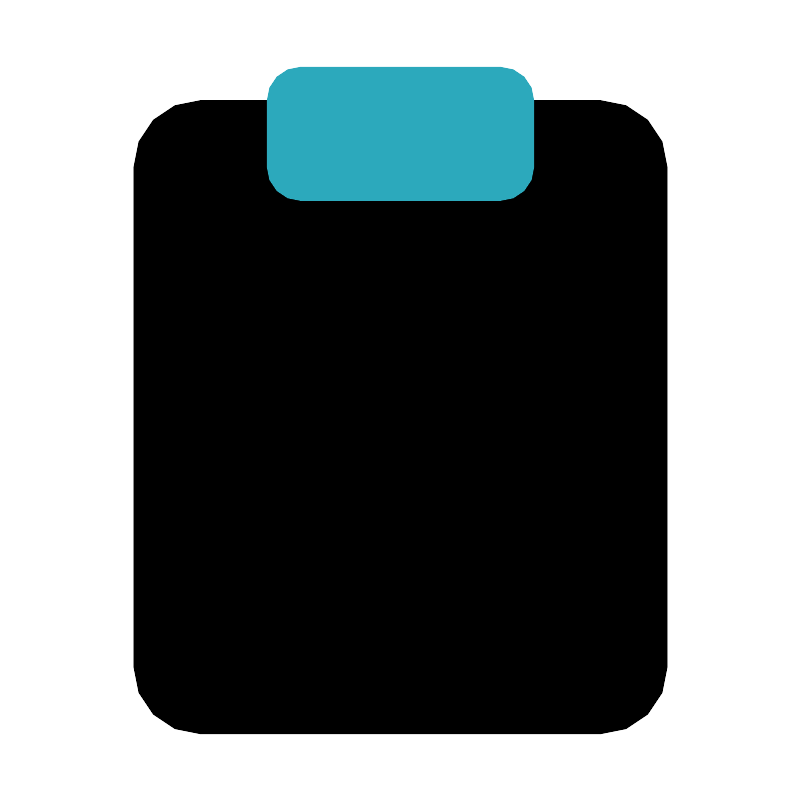 <svg fill="#000000" width="800px" height="800px" viewBox="0 0 24 24" id="note" data-name="Flat Color" xmlns="http://www.w3.org/2000/svg" class="icon flat-color"><rect id="primary" x="4" y="3" width="16" height="19" rx="2" style="fill: rgb(0, 0, 0);"></rect><rect id="secondary" x="8" y="2" width="8" height="4" rx="1" style="fill: rgb(44, 169, 188);"></rect></svg>