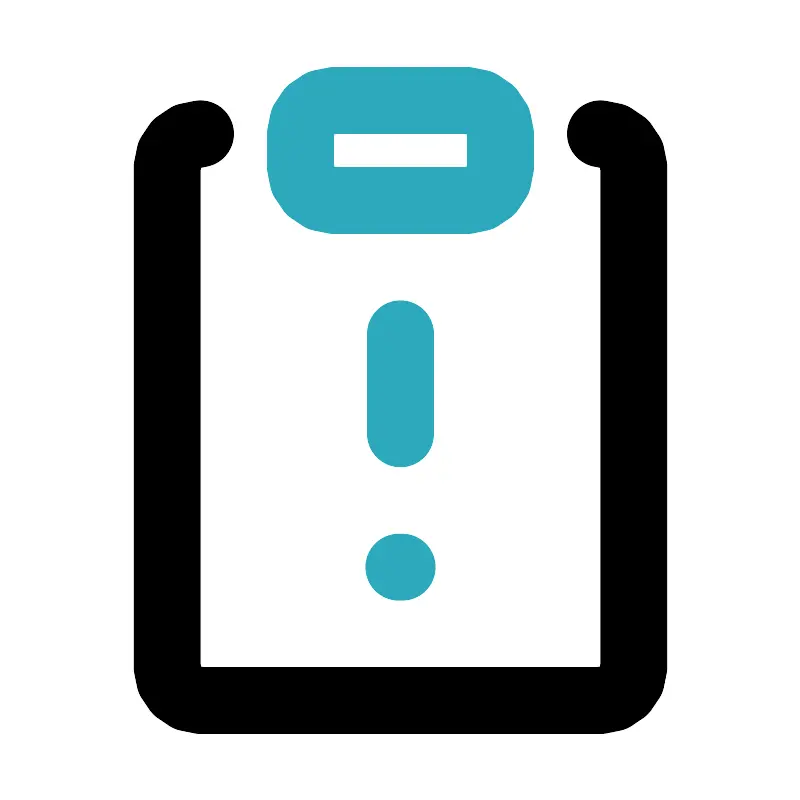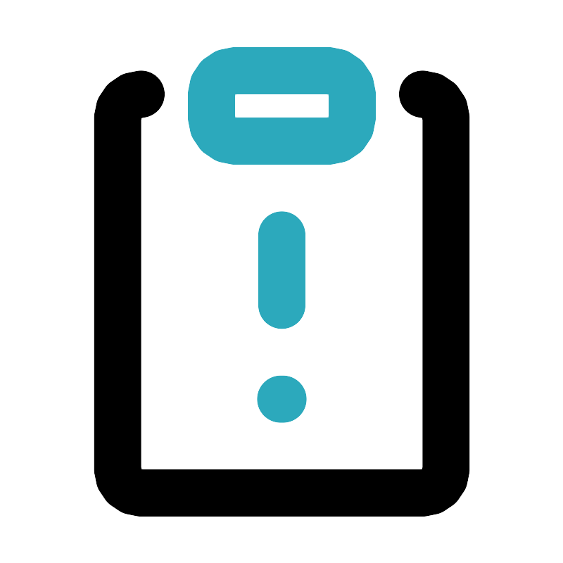<svg fill="#000000" width="800px" height="800px" viewBox="0 0 24 24" id="note-alert" data-name="Line Color" xmlns="http://www.w3.org/2000/svg" class="icon line-color"><path id="secondary" d="M14,6H10A1,1,0,0,1,9,5V4a1,1,0,0,1,1-1h4a1,1,0,0,1,1,1V5A1,1,0,0,1,14,6Zm-2,4v3" style="fill: none; stroke: rgb(44, 169, 188); stroke-linecap: round; stroke-linejoin: round; stroke-width: 2;"></path><line id="secondary-upstroke" x1="11.95" y1="17" x2="12.05" y2="17" style="fill: none; stroke: rgb(44, 169, 188); stroke-linecap: round; stroke-linejoin: round; stroke-width: 2;"></line><path id="primary" d="M18,4a1,1,0,0,1,1,1V20a1,1,0,0,1-1,1H6a1,1,0,0,1-1-1V5A1,1,0,0,1,6,4" style="fill: none; stroke: rgb(0, 0, 0); stroke-linecap: round; stroke-linejoin: round; stroke-width: 2;"></path></svg>