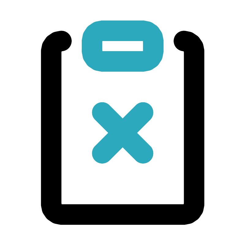 <svg fill="#000000" width="800px" height="800px" viewBox="0 0 24 24" id="note-remove" data-name="Line Color" xmlns="http://www.w3.org/2000/svg" class="icon line-color"><rect id="secondary" x="9" y="3" width="6" height="3" rx="1" style="fill: none; stroke: rgb(44, 169, 188); stroke-linecap: round; stroke-linejoin: round; stroke-width: 2;"></rect><line id="secondary-2" data-name="secondary" x1="10" y1="15" x2="14" y2="11" style="fill: none; stroke: rgb(44, 169, 188); stroke-linecap: round; stroke-linejoin: round; stroke-width: 2;"></line><line id="secondary-3" data-name="secondary" x1="10" y1="11" x2="14" y2="15" style="fill: none; stroke: rgb(44, 169, 188); stroke-linecap: round; stroke-linejoin: round; stroke-width: 2;"></line><path id="primary" d="M18,4a1,1,0,0,1,1,1V20a1,1,0,0,1-1,1H6a1,1,0,0,1-1-1V5A1,1,0,0,1,6,4" style="fill: none; stroke: rgb(0, 0, 0); stroke-linecap: round; stroke-linejoin: round; stroke-width: 2;"></path></svg>