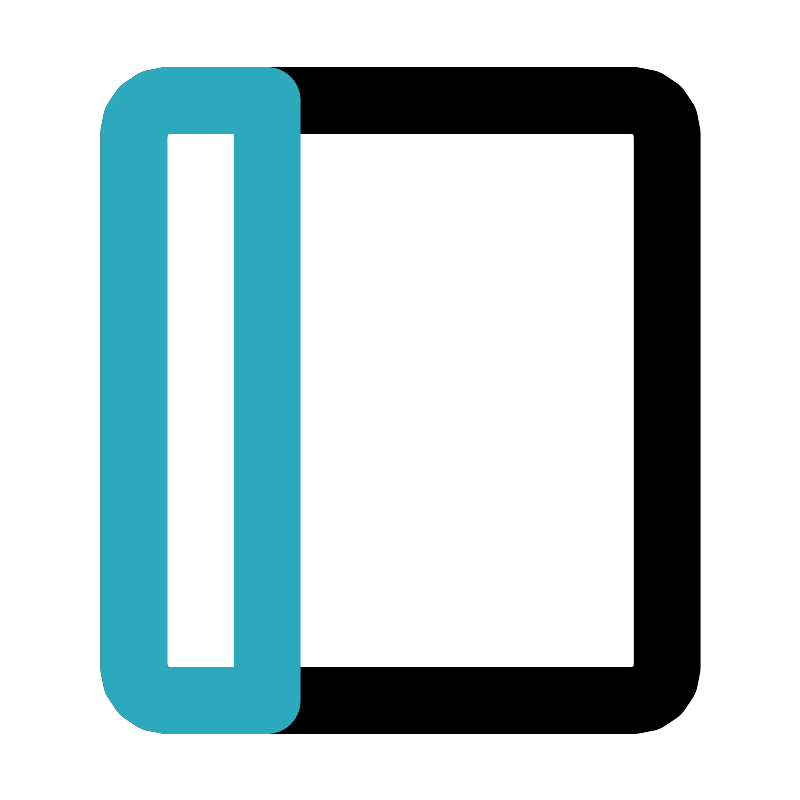 <svg fill="#000000" width="800px" height="800px" viewBox="0 0 24 24" id="notebook" data-name="Line Color" xmlns="http://www.w3.org/2000/svg" class="icon line-color"><rect id="primary" x="4" y="3" width="16" height="18" rx="1" style="fill: none; stroke: rgb(0, 0, 0); stroke-linecap: round; stroke-linejoin: round; stroke-width: 2;"></rect><path id="secondary" d="M5,3H8A0,0,0,0,1,8,3V21a0,0,0,0,1,0,0H5a1,1,0,0,1-1-1V4A1,1,0,0,1,5,3Z" style="fill: none; stroke: rgb(44, 169, 188); stroke-linecap: round; stroke-linejoin: round; stroke-width: 2;"></path></svg>