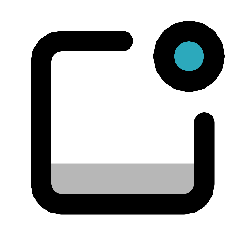 <svg width="800px" height="800px" viewBox="0 0 24 24" id="notification-alt" xmlns="http://www.w3.org/2000/svg" class="icon multi-color"><path id="tertiary-fill" d="M4,16H20a0,0,0,0,1,0,0v2a2,2,0,0,1-2,2H6a2,2,0,0,1-2-2V16A0,0,0,0,1,4,16Z" style="fill: #b7b7b7; stroke-width: 2;"></path><circle id="secondary-fill" cx="18.5" cy="5.5" r="2.5" style="fill: rgb(44, 169, 188); stroke-width: 2;"></circle><path id="primary-stroke" d="M20,12v6a2,2,0,0,1-2,2H6a2,2,0,0,1-2-2V6A2,2,0,0,1,6,4h6m4,1.5A2.5,2.5,0,1,0,18.5,3,2.5,2.5,0,0,0,16,5.5Z" style="fill: none; stroke: rgb(0, 0, 0); stroke-linecap: round; stroke-linejoin: round; stroke-width: 2;"></path></svg>