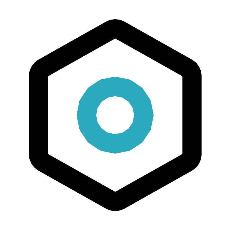 <svg fill="#000000" width="800px" height="800px" viewBox="0 0 24 24" id="nut-2" data-name="Line Color" xmlns="http://www.w3.org/2000/svg" class="icon line-color"><circle id="secondary" cx="12" cy="12" r="3" style="fill: none; stroke: rgb(44, 169, 188); stroke-linecap: round; stroke-linejoin: round; stroke-width: 2;"></circle><path id="primary" d="M4,7.94a1,1,0,0,1,.51-.87l7-3.94a1,1,0,0,1,1,0l7,3.94a1,1,0,0,1,.51.87v8.12a1,1,0,0,1-.51.87l-7,3.94a1,1,0,0,1-1,0l-7-3.94A1,1,0,0,1,4,16.06Z" style="fill: none; stroke: rgb(0, 0, 0); stroke-linecap: round; stroke-linejoin: round; stroke-width: 2;"></path></svg>