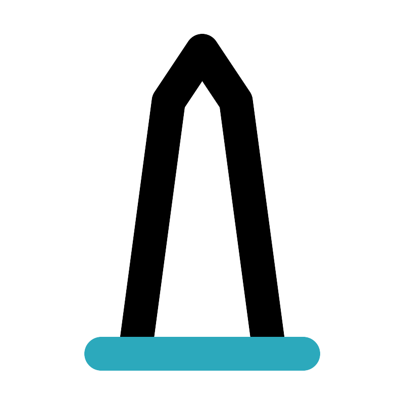 <svg fill="#000000" width="800px" height="800px" viewBox="0 0 24 24" id="obelisk" data-name="Line Color" xmlns="http://www.w3.org/2000/svg" class="icon line-color"><polygon id="primary" points="8 21 10 6 12 3 14 6 16 21 8 21" style="fill: none; stroke: rgb(0, 0, 0); stroke-linecap: round; stroke-linejoin: round; stroke-width: 2;"></polygon><line id="secondary" x1="6" y1="21" x2="18" y2="21" style="fill: none; stroke: rgb(44, 169, 188); stroke-linecap: round; stroke-linejoin: round; stroke-width: 2;"></line></svg>