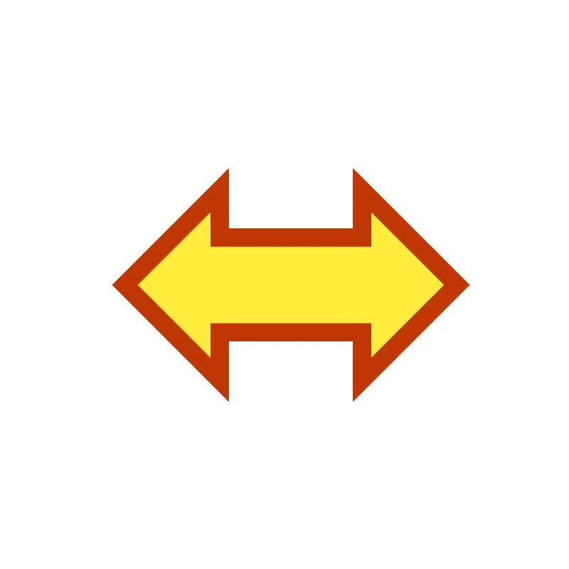 <path style="fill:#FFEB3B;stroke:#BF3603;stroke-width:6;" d="m 42,96 32,-32 0,16 48,0 0,-16 32,32 -32,32 0,-16 -48,0 0,16 z"/>