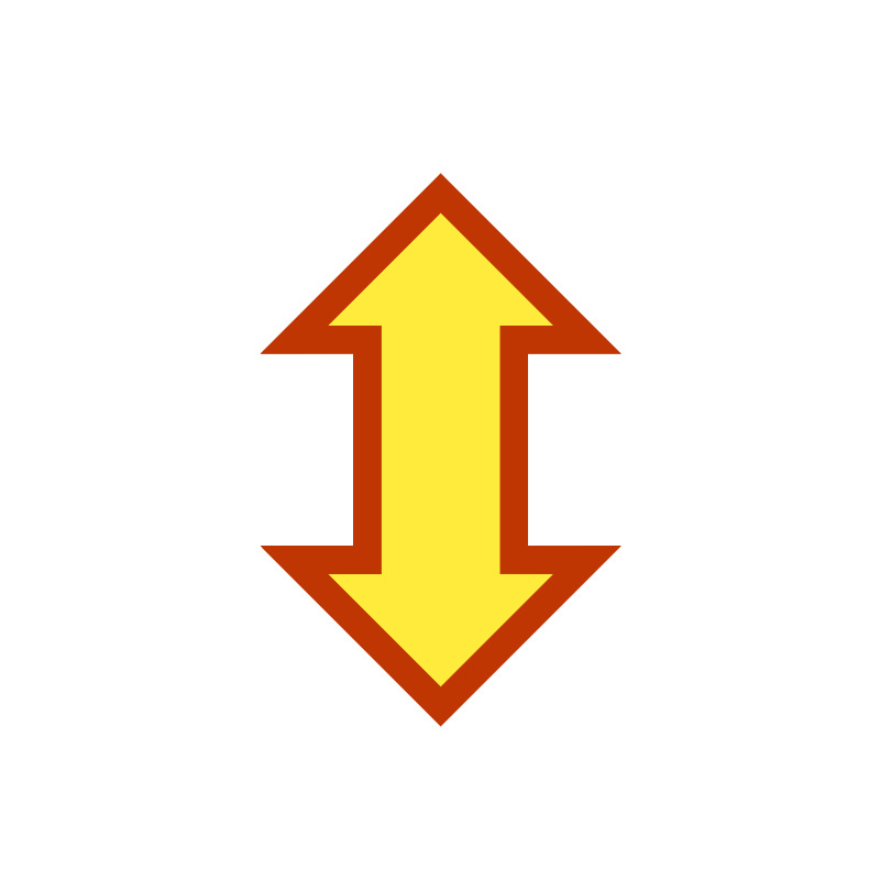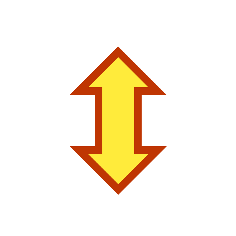 <path style="fill:#FFEB3B;stroke:#BF3603;stroke-width:6;" d="m 96,42 32,32 -16,0 0,48 16,0 -32,32 -32,-32 16,0 0,-48 -16,0 z"/>