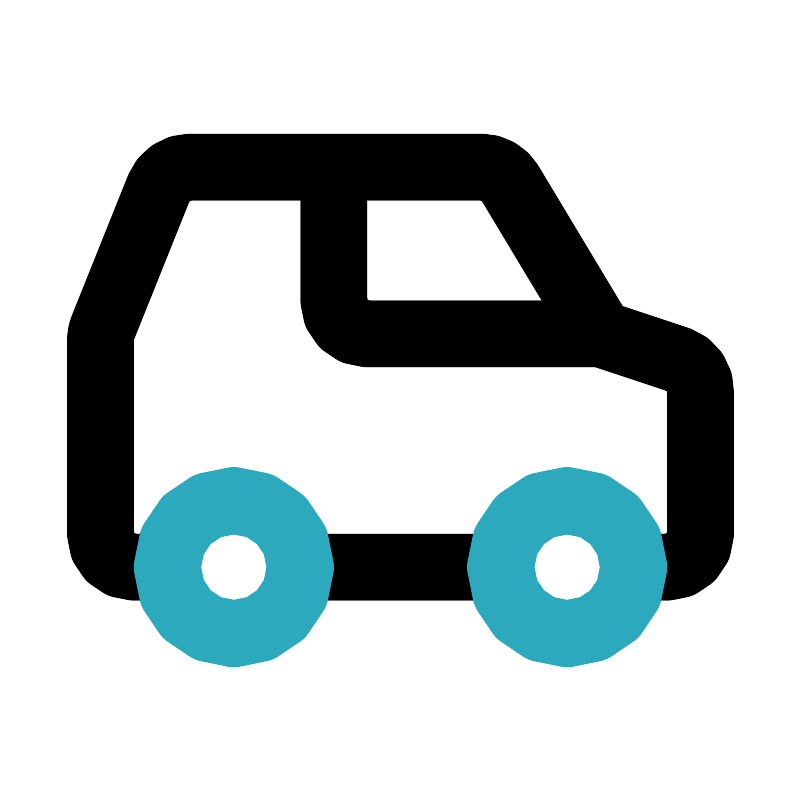 <svg fill="#000000" width="800px" height="800px" viewBox="0 0 24 24" id="off-road" data-name="Line Color" xmlns="http://www.w3.org/2000/svg" class="icon line-color"><path id="primary" d="M5,17H4a1,1,0,0,1-1-1V10.19a1,1,0,0,1,.07-.37L4.75,5.63A1,1,0,0,1,5.68,5h8.75a1,1,0,0,1,.86.49L18,10l2.32.77a1,1,0,0,1,.68,1V16a1,1,0,0,1-1,1H19" style="fill: none; stroke: rgb(0, 0, 0); stroke-linecap: round; stroke-linejoin: round; stroke-width: 2;"></path><line id="primary-2" data-name="primary" x1="15" y1="17" x2="9" y2="17" style="fill: none; stroke: rgb(0, 0, 0); stroke-linecap: round; stroke-linejoin: round; stroke-width: 2;"></line><path id="primary-3" data-name="primary" d="M10,5.18V9a1,1,0,0,0,1,1h6.78" style="fill: none; stroke: rgb(0, 0, 0); stroke-linecap: round; stroke-linejoin: round; stroke-width: 2;"></path><path id="secondary" d="M7,15a2,2,0,1,0,2,2A2,2,0,0,0,7,15Zm10,0a2,2,0,1,0,2,2A2,2,0,0,0,17,15Z" style="fill: none; stroke: rgb(44, 169, 188); stroke-linecap: round; stroke-linejoin: round; stroke-width: 2;"></path></svg>