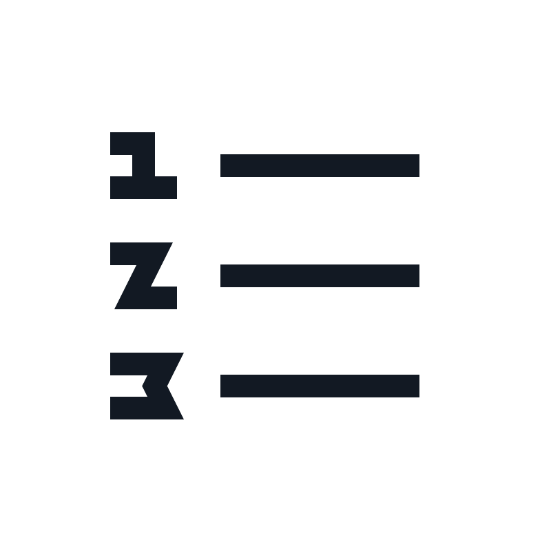 <path d="M7.5 18.5V19H8.30902L7.94721 18.2764L7.5 18.5ZM7.5 16.5L7.94721 16.7236L8.30902 16H7.5V16.5ZM7 17.5L6.55279 17.2764L6.44098 17.5L6.55279 17.7236L7 17.5ZM6.5 6.5H7V6H6.5V6.5ZM6 13.5L5.55279 13.2764L5.19098 14H6V13.5ZM7 11.5L7.44721 11.7236L7.80902 11H7V11.5ZM10 8H19V7H10V8ZM10 13H19V12H10V13ZM10 18H19V17H10V18ZM5 19H7.5V18H5V19ZM7.5 16H5V17H7.5V16ZM7.94721 18.2764L7.44721 17.2764L6.55279 17.7236L7.05279 18.7236L7.94721 18.2764ZM7.44721 17.7236L7.94721 16.7236L7.05279 16.2764L6.55279 17.2764L7.44721 17.7236ZM5 7H6.5V6H5V7ZM5 9H6.5V8H5V9ZM6.5 9H8V8H6.5V9ZM6 6.5V8.5H7V6.5H6ZM8 13H6V14H8V13ZM6.44721 13.7236L7.44721 11.7236L6.55279 11.2764L5.55279 13.2764L6.44721 13.7236ZM7 11H5V12H7V11Z" fill="#121923"/>