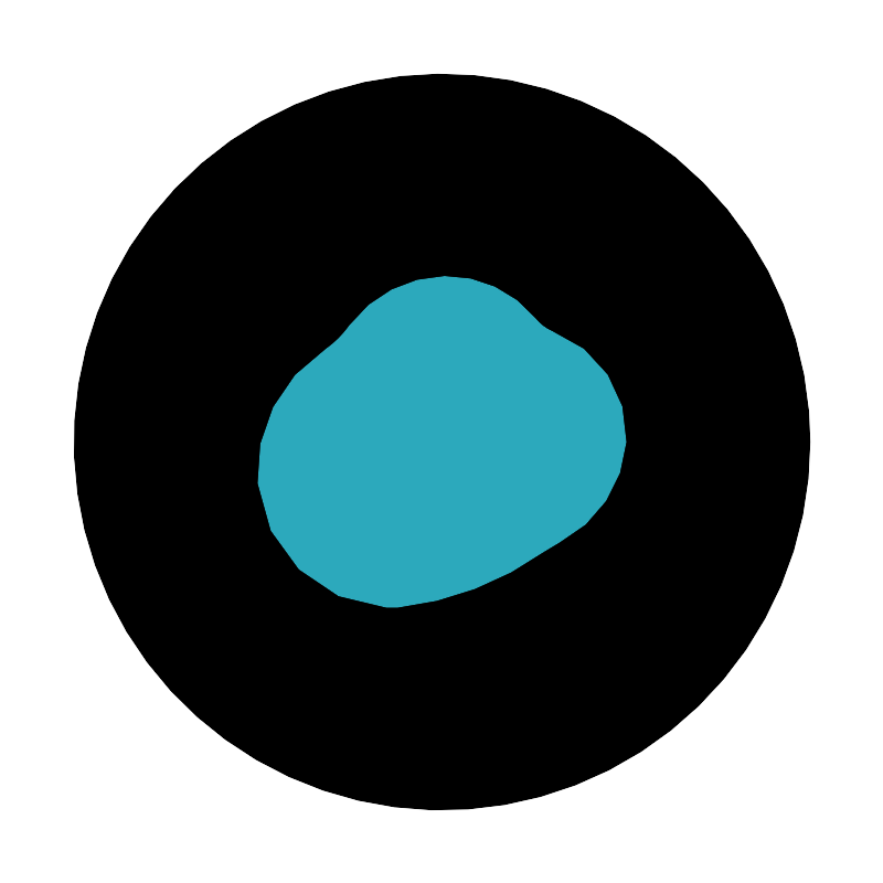 <svg fill="#000000" width="800px" height="800px" viewBox="0 0 24 24" id="omelette" data-name="Flat Color" xmlns="http://www.w3.org/2000/svg" class="icon flat-color"><circle id="primary" cx="12" cy="12" r="10" style="fill: rgb(0, 0, 0);"></circle><path id="secondary" d="M15,9h0a1.23,1.23,0,0,1-.47-.36A3.1,3.1,0,0,0,12.07,7.5,3.31,3.31,0,0,0,9.5,8.82a2.81,2.81,0,0,1-.67.67A4,4,0,0,0,7,13.12a3.71,3.71,0,0,0,3.49,3.37l.3,0a8.44,8.44,0,0,0,4-1.53l.4-.24A3.35,3.35,0,0,0,17,12,3.05,3.05,0,0,0,15,9Z" style="fill: rgb(44, 169, 188);"></path></svg>