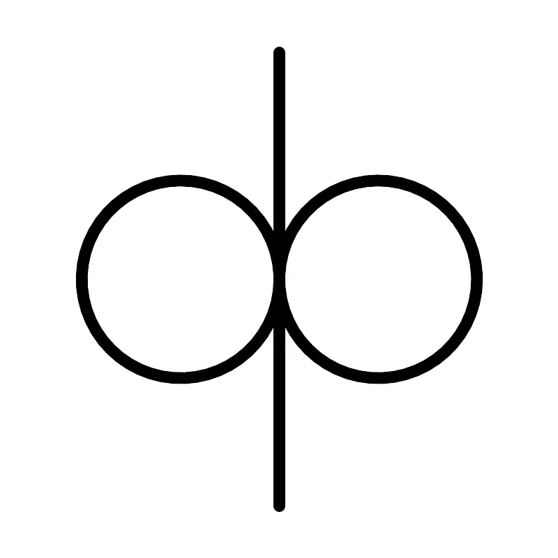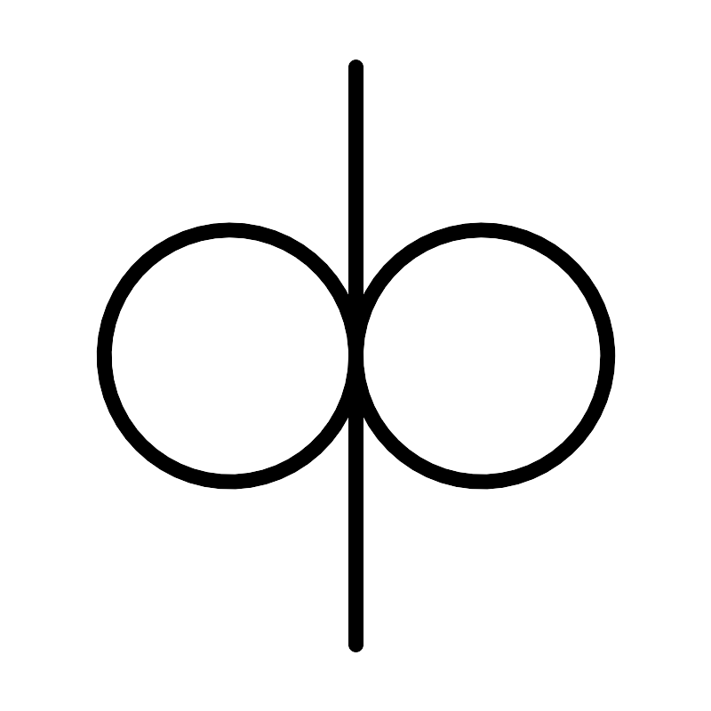 <svg width="800px" height="800px" viewBox="0 0 48 48" xmlns="http://www.w3.org/2000/svg"><defs><style>.a{fill:none;stroke:#000000;stroke-linecap:round;stroke-linejoin:round;}</style></defs><line class="a" x1="24" y1="43.5" x2="24" y2="4.5"/><circle class="a" cx="32.5" cy="24" r="8.5"/><circle class="a" cx="15.5" cy="24" r="8.5"/></svg>