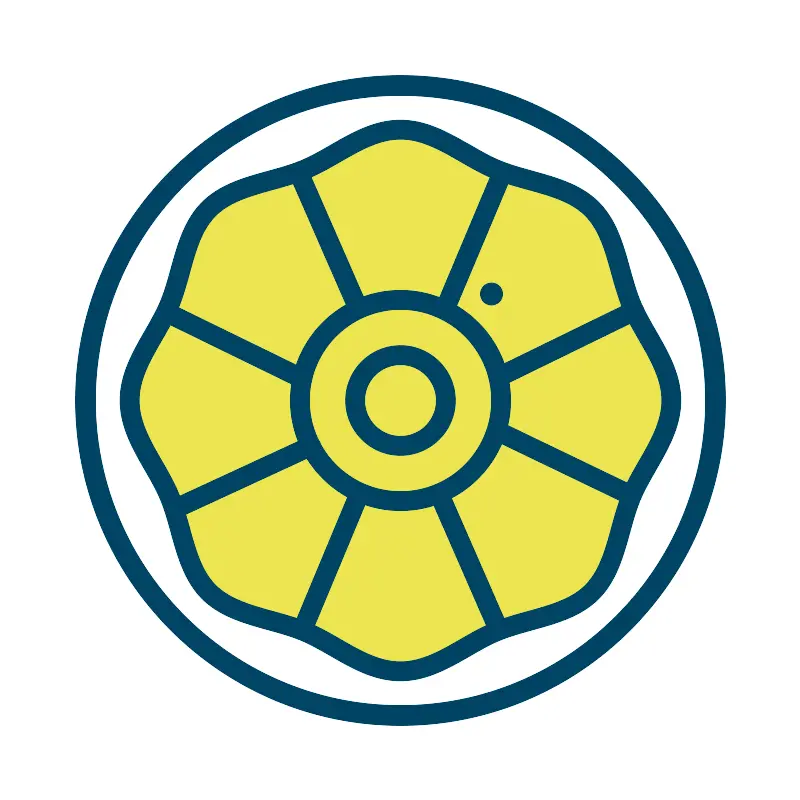 <svg width="800px" height="800px" viewBox="0 0 1024 1024" class="icon" version="1.1" xmlns="http://www.w3.org/2000/svg"><path d="M512 513.7m-406 0a406 406 0 1 0 812 0 406 406 0 1 0-812 0Z" fill="#F2B53B" /><path d="M505.5 164.5c39.1 0 102.5 47.5 136.7 56.7 34.2 9.2 104.6 27.2 112.3 40.4 7.7 13.2 44.4 114.6 56.7 135.8 12.2 21.3 44.4 78.2 44.4 108.7s-36.7 91.7-45.9 117.7c-9.2 26.1-18.4 100.6-44.4 125.3s-207.7 109-245.5 109-103.3-41.3-124.1-49c-20.8-7.7-109.7-26.1-120.4-41.4-10.7-15.3-44.5-90.2-52.9-115.5-8.4-25.3-58.8-122.6-60.4-150.8-1.6-28.2 56.6-96.9 60.4-125.8 3.9-28.9 20.7-99.7 45.2-114.1 24.5-14.4 102.9-34.3 128-48.1 25-13.7 109.9-48.9 109.9-48.9z" fill="#EDE551" /><path d="M512 513.7m-125.7 0a125.7 125.7 0 1 0 251.4 0 125.7 125.7 0 1 0-251.4 0Z" fill="#FFFCEE" /><path d="M838.5 422.2c-7.4-12.9-14.4-25.1-19.5-37.4-5.4-12.9-9.2-27-13.4-41.8-8.4-30.5-17.2-62.1-39.9-84.8-22.7-22.7-54.2-31.4-84.8-39.9-14.9-4.1-28.9-8-41.8-13.4-12.2-5.1-24.4-12.1-37.4-19.5-27.7-15.9-56.3-32.3-89.8-32.3s-62.2 16.4-89.8 32.3c-12.9 7.4-25.1 14.4-37.4 19.5-12.9 5.4-27 9.3-41.8 13.4-30.5 8.4-62.1 17.2-84.8 39.9-22.7 22.7-31.4 54.2-39.9 84.8-4.1 14.9-8 28.9-13.4 41.8-5.1 12.2-12.1 24.5-19.5 37.4-15.9 27.7-32.3 56.2-32.3 89.8 0 33.6 16.4 62.2 32.3 89.8 7.4 12.9 14.4 25.1 19.5 37.4 5.4 12.9 9.3 27 13.4 41.8 8.4 30.5 17.2 62 39.9 84.8 22.7 22.7 54.3 31.4 84.8 39.9 14.9 4.1 28.9 8 41.8 13.4 12.2 5.1 24.4 12.1 37.4 19.5 27.6 15.9 56.2 32.3 89.8 32.3 33.5 0 62.1-16.4 89.8-32.3 12.9-7.4 25.1-14.5 37.4-19.5 12.9-5.4 27-9.2 41.8-13.4 30.5-8.4 62.1-17.2 84.8-39.9 22.7-22.7 31.4-54.3 39.9-84.8 4.1-14.9 8-28.9 13.4-41.8 5.1-12.2 12.1-24.4 19.5-37.4 15.9-27.7 32.4-56.3 32.4-89.8s-16.5-62.1-32.4-89.8z m-21.2 167.4c-7.5 13-15.2 26.5-20.9 40.2-5.9 14.3-10.2 29.8-14.3 44.7-7.9 28.7-15.4 55.8-33.6 74-18.1 18.1-45.3 25.6-74 33.6-14.9 4.1-30.4 8.4-44.7 14.3-13.7 5.7-27.2 13.4-40.2 20.9-26 15-50.6 29.1-77.6 29.1s-51.6-14.1-77.6-29.1c-13-7.5-26.5-15.2-40.2-20.9-14.3-5.9-29.8-10.2-44.7-14.3-28.7-7.9-55.8-15.5-74-33.6-18.1-18.1-25.6-45.3-33.6-74-4.1-14.9-8.4-30.4-14.3-44.7-5.7-13.7-13.4-27.2-20.9-40.2-15-26-29.1-50.6-29.1-77.6 0-27 14.1-51.6 29.1-77.6 7.5-13 15.2-26.5 20.9-40.2 5.9-14.3 10.2-29.8 14.3-44.7 7.9-28.7 15.4-55.8 33.6-74 18.1-18.1 45.3-25.6 74-33.6 14.9-4.1 30.4-8.4 44.7-14.3 13.7-5.7 27.2-13.4 40.2-20.9 26-15 50.6-29.1 77.6-29.1 27 0 51.6 14.1 77.6 29.1 13 7.5 26.5 15.2 40.2 20.9 14.3 5.9 29.8 10.2 44.7 14.3 28.7 7.9 55.8 15.4 74 33.6 18.1 18.1 25.6 45.3 33.6 74 4.1 14.9 8.4 30.3 14.3 44.7 5.7 13.7 13.4 27.2 20.9 40.2 15 26 29.1 50.6 29.1 77.6 0 27-14.2 51.6-29.1 77.6z" fill="#004364" /><path d="M512 96C282.6 96 96 282.6 96 512s186.6 416 416 416 416-186.6 416-416S741.4 96 512 96z m0 806.4c-215.3 0-390.4-175.1-390.4-390.4 0-215.3 175.1-390.4 390.4-390.4S902.4 296.7 902.4 512c0 215.3-175.1 390.4-390.4 390.4z" fill="#004364" /><path d="M512 371c-77.8 0-141 63.3-141 141 0 77.8 63.3 141 141 141s141-63.3 141-141c0-77.8-63.2-141-141-141z m0 257.5c-64.3 0-116.5-52.3-116.5-116.5S447.8 395.5 512 395.5 628.5 447.8 628.5 512c0 64.3-52.3 116.5-116.5 116.5z" fill="#004364" /><path d="M512 441.7c-38.8 0-70.3 31.5-70.3 70.3s31.5 70.3 70.3 70.3 70.3-31.6 70.3-70.3c0-38.8-31.5-70.3-70.3-70.3z m0 116.1c-25.3 0-45.8-20.6-45.8-45.8 0-25.3 20.6-45.8 45.8-45.8 25.3 0 45.8 20.6 45.8 45.8 0 25.3-20.5 45.8-45.8 45.8z" fill="#004364" /><path d="M321.7 289.9m-14.2 0a14.2 14.2 0 1 0 28.4 0 14.2 14.2 0 1 0-28.4 0Z" fill="#004364" /><path d="M554.6 275.7m-14.2 0a14.2 14.2 0 1 0 28.4 0 14.2 14.2 0 1 0-28.4 0Z" fill="#004364" /><path d="M295.1 348.7m-14.2 0a14.2 14.2 0 1 0 28.4 0 14.2 14.2 0 1 0-28.4 0Z" fill="#004364" /><path d="M250.6 557.8m-14.2 0a14.2 14.2 0 1 0 28.4 0 14.2 14.2 0 1 0-28.4 0Z" fill="#004364" /><path d="M628.5 361.5c-7.8 0-14.2 6.3-14.2 14.2s6.3 14.2 14.2 14.2c7.8 0 14.2-6.3 14.2-14.2s-6.4-14.2-14.2-14.2z" fill="#004364" /><path d="M222.2 506.1m-14.2 0a14.2 14.2 0 1 0 28.4 0 14.2 14.2 0 1 0-28.4 0Z" fill="#004364" /><path d="M653 712.5m-14.2 0a14.2 14.2 0 1 0 28.4 0 14.2 14.2 0 1 0-28.4 0Z" fill="#004364" /><path d="M278.9 498.1m-14.2 0a14.2 14.2 0 1 0 28.4 0 14.2 14.2 0 1 0-28.4 0Z" fill="#004364" /><path d="M637.7 817.8c-4.7 0-9.2-2.7-11.2-7.3L552.8 642c-2.7-6.2 0.1-13.4 6.3-16.1 6.2-2.7 13.4 0.1 16.1 6.3l73.7 168.5c2.7 6.2-0.1 13.4-6.3 16.1-1.6 0.7-3.3 1-4.9 1zM456.9 404.2c-4.7 0-9.2-2.7-11.2-7.3L372 228.4c-2.7-6.2 0.1-13.4 6.3-16.1 6.2-2.7 13.4 0.1 16.1 6.3L468.1 387c2.7 6.2-0.1 13.4-6.3 16.1-1.6 0.8-3.3 1.1-4.9 1.1zM802.9 643.7c-1.8 0-3.6-0.4-5.3-1.2L632.4 563c-6.1-2.9-8.7-10.3-5.7-16.4 2.9-6.1 10.3-8.6 16.4-5.7l165.2 79.5c6.1 2.9 8.7 10.3 5.7 16.4-2.2 4.4-6.6 6.9-11.1 6.9zM568.7 407.7c-1.6 0-3.2-0.3-4.7-1-6.2-2.6-9.2-9.8-6.5-16l73.4-174.4c2.6-6.2 9.9-9.1 16-6.5 6.2 2.6 9.2 9.8 6.5 16L580 400.2c-2 4.7-6.5 7.5-11.3 7.5zM637.7 494.2c-4.5 0-8.9-2.5-11-6.9-3-6.1-0.4-13.4 5.6-16.4l173.4-84.6c6.1-3 13.4-0.4 16.4 5.6 3 6.1 0.4 13.4-5.6 16.4L643 493c-1.7 0.8-3.5 1.2-5.3 1.2zM386.3 496.2c-1.8 0-3.6-0.4-5.4-1.2l-173.4-84.6c-6.1-3-8.6-10.3-5.6-16.4 3-6.1 10.3-8.6 16.4-5.6L391.7 473c6.1 3 8.6 10.3 5.6 16.4-2.1 4.3-6.5 6.8-11 6.8zM224 662.6c-4.6 0-9.1-2.6-11.1-7.1-2.8-6.1-0.2-13.4 6-16.3l173.4-80.1c6.2-2.8 13.4-0.2 16.3 6 2.8 6.1 0.2 13.4-6 16.3l-173.4 80.1c-1.7 0.7-3.5 1.1-5.2 1.1zM386.3 818.5c-1.6 0-3.2-0.3-4.7-0.9-6.2-2.6-9.2-9.8-6.6-16l70.4-168.7c2.6-6.2 9.8-9.2 16-6.6s9.2 9.8 6.6 16L397.6 811c-1.9 4.6-6.5 7.5-11.3 7.5z" fill="#004364" /></svg>