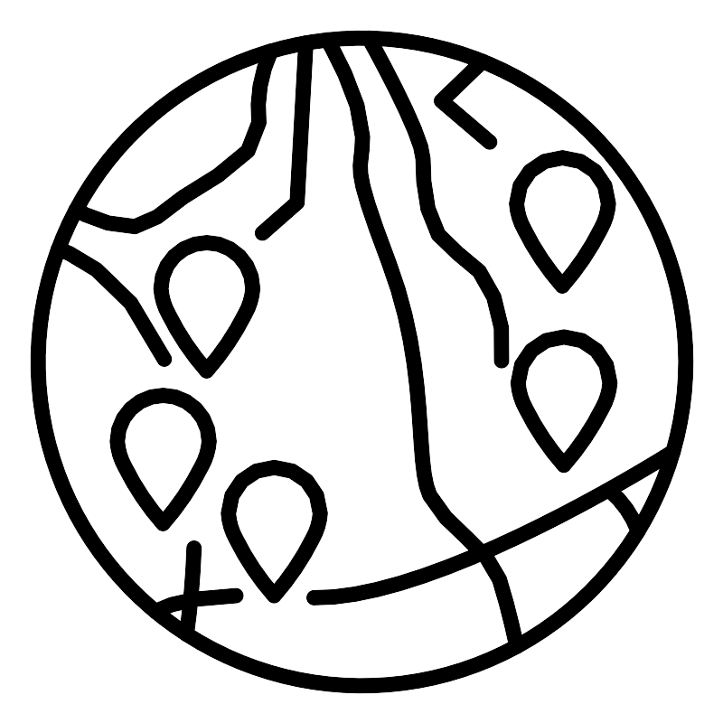 <svg width="800px" height="800px" viewBox="0 0 48 48" xmlns="http://www.w3.org/2000/svg"><defs><style>.a{fill:none;stroke:#000000;stroke-linecap:round;stroke-linejoin:round;}</style></defs><circle class="a" cx="24" cy="24" r="21.5"/><path class="a" d="M21.707,2.6226S24.0353,6.53,24.0386,9.0542s-.9187,1.3182,1.7592,8.3851,1.6771,13.264,2.7062,15.415,3.9566,3.4926,4.6251,5.5907,1.14,4.4441,1.14,4.4441"/><path class="a" d="M24.456,2.5048s3.598,6.4028,3.598,8.0079.11,5.1249,2.31,6.2807,3.2141,4.2135,2.9049,7.1238M40.44,32.53a6.4741,6.4741,0,0,1,1.8911,2.7047"/><path class="a" d="M3.8463,16.511s4.3716,1.1913,7.0311,7.304m1.9757,12.546a54.72,54.72,0,0,1-.4971,5.7123"/><path class="a" d="M10.327,40.592s1.012-.9287,5.3066-1.0756m5.1872.1367c8.4121.1406,23.839-9.6994,23.839-9.6994"/><path class="a" d="M20.28,2.8243l-.5855,10.597-2.3023,2.0234"/><path class="a" d="M5.0119,13.915s3.8822,2.1467,5.3953.4544,7.0218-3.5724,6.7491-6.2545a9.2349,9.2349,0,0,1,.7986-4.7479"/><path class="a" d="M32.002,4.0448,29.2782,6.6691l3.2036,2.7336"/><path class="a" d="M13.689,24.594a17.4255,17.4255,0,0,1-2.5153-3.7446,4.09,4.09,0,0,1-.5176-1.72,3.0472,3.0472,0,1,1,6.0944,0,4.0442,4.0442,0,0,1-.51,1.6855,17.9847,17.9847,0,0,1-2.5515,3.7788Z"/><path class="a" d="M18.167,39.519a17.4255,17.4255,0,0,1-2.5153-3.7446,4.09,4.09,0,0,1-.5176-1.72,3.0472,3.0472,0,0,1,6.0944,0,4.0452,4.0452,0,0,1-.51,1.6855,17.9847,17.9847,0,0,1-2.5515,3.7788Z"/><path class="a" d="M37.401,30.854a17.4255,17.4255,0,0,1-2.5153-3.7446,4.09,4.09,0,0,1-.5176-1.72,3.0472,3.0472,0,1,1,6.0944,0,4.0457,4.0457,0,0,1-.51,1.6855,17.9847,17.9847,0,0,1-2.5515,3.7788Z"/><path class="a" d="M37.3,18.958a17.4255,17.4255,0,0,1-2.5153-3.7446,4.09,4.09,0,0,1-.5176-1.72,3.0472,3.0472,0,1,1,6.0944,0,4.0452,4.0452,0,0,1-.51,1.6855A17.9847,17.9847,0,0,1,37.3,18.9581Z"/><path class="a" d="M10.791,34.734a17.4255,17.4255,0,0,1-2.5153-3.7446,4.09,4.09,0,0,1-.5176-1.72,3.0472,3.0472,0,1,1,6.0944,0,4.0437,4.0437,0,0,1-.51,1.6855,17.9847,17.9847,0,0,1-2.5515,3.7788Z"/></svg>