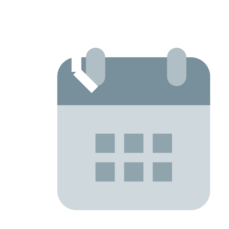<svg width="800px" height="800px" viewBox="0 0 1024 1024" class="icon" version="1.1" xmlns="http://www.w3.org/2000/svg"><path d="M256 853.333333V426.666667h682.666667v426.666666c0 46.933333-38.4 85.333333-85.333334 85.333334H341.333333c-46.933333 0-85.333333-38.4-85.333333-85.333334z" fill="#CFD8DC" /><path d="M938.666667 341.333333v128H256v-128c0-46.933333 38.4-85.333333 85.333333-85.333333h512c46.933333 0 85.333333 38.4 85.333334 85.333333z" fill="#78909C" /><path d="M789.333333 341.333333m-64 0a64 64 0 1 0 128 0 64 64 0 1 0-128 0Z" fill="#37474F" /><path d="M426.666667 341.333333m-64 0a64 64 0 1 0 128 0 64 64 0 1 0-128 0Z" fill="#37474F" /><path d="M789.333333 213.333333c-23.466667 0-42.666667 19.2-42.666666 42.666667v85.333333c0 23.466667 19.2 42.666667 42.666666 42.666667s42.666667-19.2 42.666667-42.666667v-85.333333c0-23.466667-19.2-42.666667-42.666667-42.666667zM426.666667 213.333333c-23.466667 0-42.666667 19.2-42.666667 42.666667v85.333333c0 23.466667 19.2 42.666667 42.666667 42.666667s42.666667-19.2 42.666666-42.666667v-85.333333c0-23.466667-19.2-42.666667-42.666666-42.666667z" fill="#B0BEC5" /><path d="M682.666667 725.333333h85.333333v85.333334h-85.333333zM554.666667 725.333333h85.333333v85.333334h-85.333333zM426.666667 725.333333h85.333333v85.333334h-85.333333zM682.666667 597.333333h85.333333v85.333334h-85.333333zM554.666667 597.333333h85.333333v85.333334h-85.333333zM426.666667 597.333333h85.333333v85.333334h-85.333333z" fill="#90A4AE" /><path d="M341.333333 320m-256 0a256 256 0 1 0 512 0 256 256 0 1 0-512 0Z" fill="#F44336" /><path d="M341.333333 320m-192 0a192 192 0 1 0 384 0 192 192 0 1 0-384 0Z" fill="#EEEEEE" /><path d="M320 170.666667h42.666667v149.333333h-42.666667z" fill="" /><path d="M437.717333 386.133333l-28.650666 28.672-81.450667-81.450666 28.672-28.650667z" fill="" /><path d="M341.333333 320m-32 0a32 32 0 1 0 64 0 32 32 0 1 0-64 0Z" fill="" /></svg>