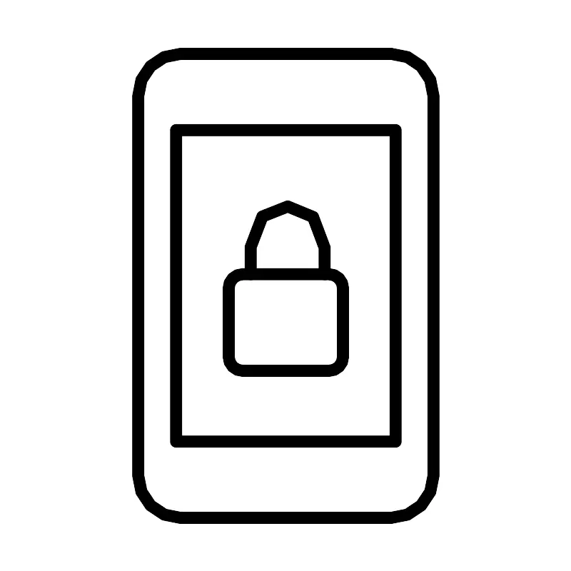 <svg width="800px" height="800px" viewBox="0 0 48 48" id="b" xmlns="http://www.w3.org/2000/svg"><defs><style>.g{fill:none;stroke:#000000;stroke-linecap:round;stroke-linejoin:round;}</style></defs><rect id="c" class="g" x="11.5909" y="4.5" width="24.8182" height="39" rx="3.5455" ry="3.5455"/><rect id="d" class="g" x="14.7756" y="10.9091" width="18.4488" height="26.1818"/><rect id="e" class="g" x="19.1945" y="23.0219" width="9.611" height="8.1197" rx="1.1818" ry="1.1818"/><path id="f" class="g" d="m21.0449,23.0219v-2.2808c.0334-4.5813,6.198-4.5392,6.214.0552v2.2255"/></svg>