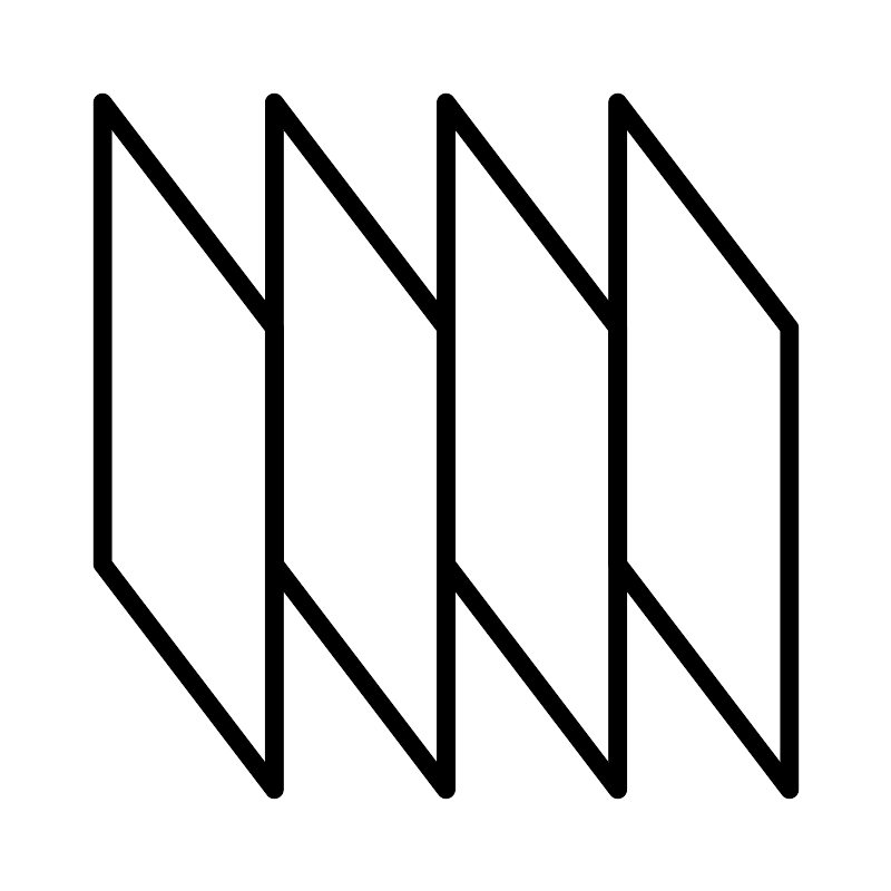 <svg width="800px" height="800px" viewBox="0 0 48 48" xmlns="http://www.w3.org/2000/svg"><defs><style>.a{fill:none;stroke:#000000;stroke-linecap:round;stroke-linejoin:round;}</style></defs><polygon class="a" points="14.75 42.5 5.5 30.366 5.5 5.5 14.75 17.634 14.75 42.5"/><polygon class="a" points="24 42.5 14.75 30.366 14.75 5.5 24 17.634 24 42.5"/><polygon class="a" points="33.25 42.5 24 30.366 24 5.5 33.25 17.634 33.25 42.5"/><polygon class="a" points="42.5 42.5 33.25 30.366 33.25 5.5 42.5 17.634 42.5 42.5"/></svg>
