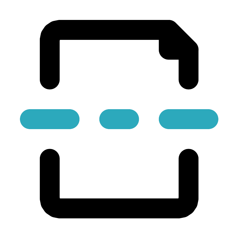 <svg fill="#000000" width="800px" height="800px" viewBox="0 0 24 24" id="page-break-2" data-name="Line Color" xmlns="http://www.w3.org/2000/svg" class="icon line-color"><path id="secondary" d="M3,12H7m14,0H17m-6,0h2" style="fill: none; stroke: rgb(44, 169, 188); stroke-linecap: round; stroke-linejoin: round; stroke-width: 2;"></path><path id="primary" d="M5,8V4A1,1,0,0,1,6,3H17l2,2V8" style="fill: none; stroke: rgb(0, 0, 0); stroke-linecap: round; stroke-linejoin: round; stroke-width: 2;"></path><path id="primary-2" data-name="primary" d="M5,16v4a1,1,0,0,0,1,1H18a1,1,0,0,0,1-1V16" style="fill: none; stroke: rgb(0, 0, 0); stroke-linecap: round; stroke-linejoin: round; stroke-width: 2;"></path><polygon id="primary-3" data-name="primary" points="17 3 17 5 19 5 17 3" style="fill: none; stroke: rgb(0, 0, 0); stroke-linecap: round; stroke-linejoin: round; stroke-width: 2;"></polygon></svg>
