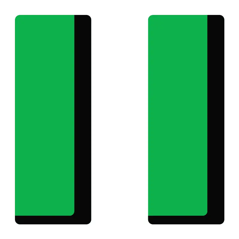 <svg width="800px" height="800px" viewBox="0 0 1024 1024" class="icon" version="1.1" xmlns="http://www.w3.org/2000/svg"><path d="M369.454 960.001H84.363c-11.216 0-20.363-9.087-20.363-20.364V84.364c0-11.257 9.147-20.363 20.363-20.363h285.091c11.299 0 20.365 9.106 20.365 20.363v855.273a20.312 20.312 0 0 1-20.365 20.364zM939.636 960.001H654.545c-11.216 0-20.363-9.087-20.363-20.364V84.364c0-11.257 9.147-20.363 20.363-20.363h285.091c11.298 0 20.364 9.106 20.364 20.363v855.273a20.312 20.312 0 0 1-20.364 20.364z" fill="#0DB14B" /><path d="M369.455 63.999h-51.317v839.799a20.309 20.309 0 0 1-20.363 20.362H64v15.478C64 950.917 73.147 960 84.363 960h285.092a20.309 20.309 0 0 0 20.363-20.362V84.364c0.001-11.257-9.065-20.365-20.363-20.365zM939.637 63.999H888.32v839.799a20.309 20.309 0 0 1-20.363 20.362H634.181v15.478c0 11.279 9.147 20.362 20.363 20.362h285.092a20.309 20.309 0 0 0 20.363-20.362V84.364c0.001-11.257-9.065-20.365-20.362-20.365z" fill="#070707" /></svg>