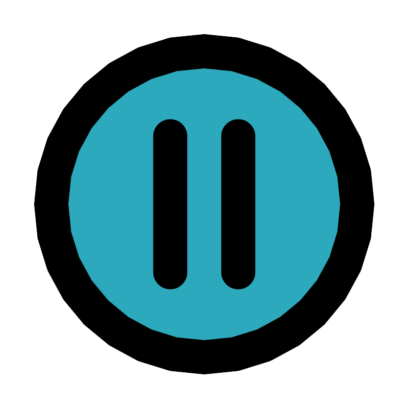 <svg fill="#000000" width="800px" height="800px" viewBox="0 0 24 24" id="pause-circle" data-name="Flat Line" xmlns="http://www.w3.org/2000/svg" class="icon flat-line"><circle id="secondary" cx="12" cy="12" r="9" style="fill: rgb(44, 169, 188); stroke-width: 2;"></circle><path id="primary" d="M14,8v8M10,8v8M12,3a9,9,0,1,0,9,9A9,9,0,0,0,12,3Z" style="fill: none; stroke: rgb(0, 0, 0); stroke-linecap: round; stroke-linejoin: round; stroke-width: 2;"></path></svg>