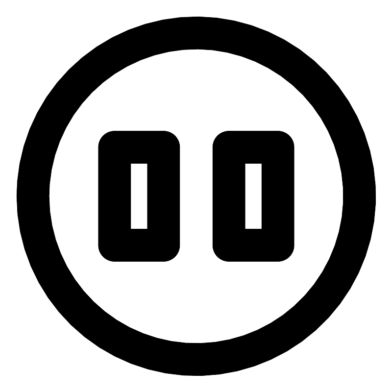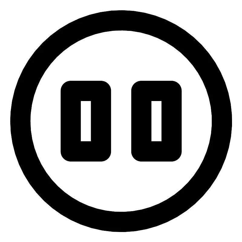 <svg width="800px" height="800px" viewBox="0 0 24 24" xmlns="http://www.w3.org/2000/svg" fill="none"><path stroke="#000000" stroke-linecap="round" stroke-linejoin="round" stroke-width="2" d="M7 9h3v6H7zm7 0h3v6h-3z"/><circle r="10" stroke="#000000" stroke-linecap="round" stroke-linejoin="round" stroke-width="2" transform="matrix(-1 0 0 1 12 12)"/></svg>