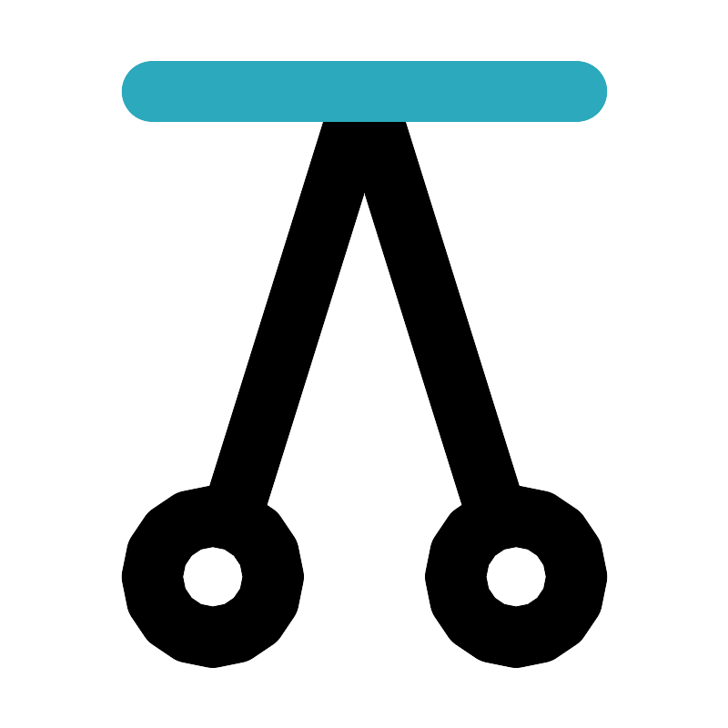 <svg fill="#000000" width="800px" height="800px" viewBox="0 0 24 24" id="pendulum-4" data-name="Line Color" xmlns="http://www.w3.org/2000/svg" class="icon line-color"><path id="primary" d="M5,19a2,2,0,1,1,2,2A2,2,0,0,1,5,19ZM12,3,7.6,17.09M19,19a2,2,0,1,0-2,2A2,2,0,0,0,19,19ZM12,3l4.4,14.09" style="fill: none; stroke: rgb(0, 0, 0); stroke-linecap: round; stroke-linejoin: round; stroke-width: 2;"></path><line id="secondary" x1="19" y1="3" x2="5" y2="3" style="fill: none; stroke: rgb(44, 169, 188); stroke-linecap: round; stroke-linejoin: round; stroke-width: 2;"></line></svg>