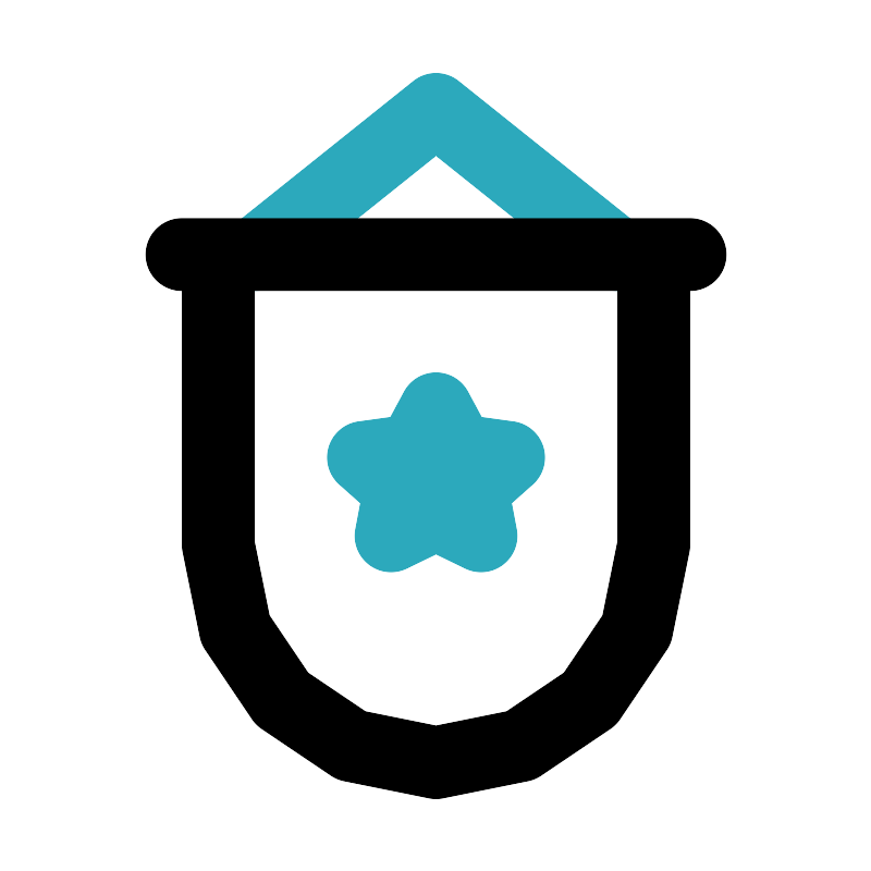 <svg fill="#000000" width="800px" height="800px" viewBox="0 0 24 24" id="pennant-8" data-name="Line Color" xmlns="http://www.w3.org/2000/svg" class="icon line-color"><polyline id="secondary" points="7 7 12 3 17 7" style="fill: none; stroke: rgb(44, 169, 188); stroke-linecap: round; stroke-linejoin: round; stroke-width: 2;"></polyline><polygon id="secondary-2" data-name="secondary" points="12 11.25 11.38 12.4 10 12.59 11 13.48 10.76 14.75 12 14.15 13.24 14.75 13 13.48 14 12.59 12.62 12.4 12 11.25" style="fill: none; stroke: rgb(44, 169, 188); stroke-linecap: round; stroke-linejoin: round; stroke-width: 2;"></polygon><path id="primary" d="M12,7h6v8a6,6,0,0,1-6,6h0a6,6,0,0,1-6-6V7ZM5,7H19" style="fill: none; stroke: rgb(0, 0, 0); stroke-linecap: round; stroke-linejoin: round; stroke-width: 2;"></path></svg>