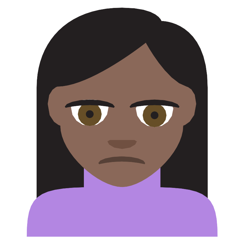 Человек со скорбным выражением лица с тёмной кожей (Person frowning dark skin tone)