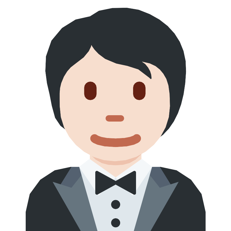 Человек в смокинге (Person in tuxedo) со светлой кожей (light skin tone)