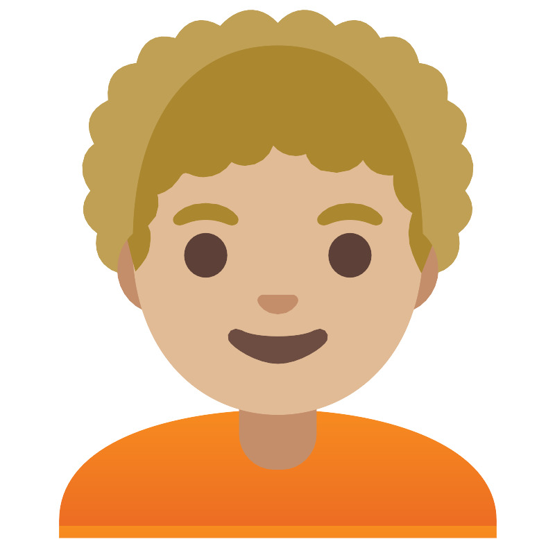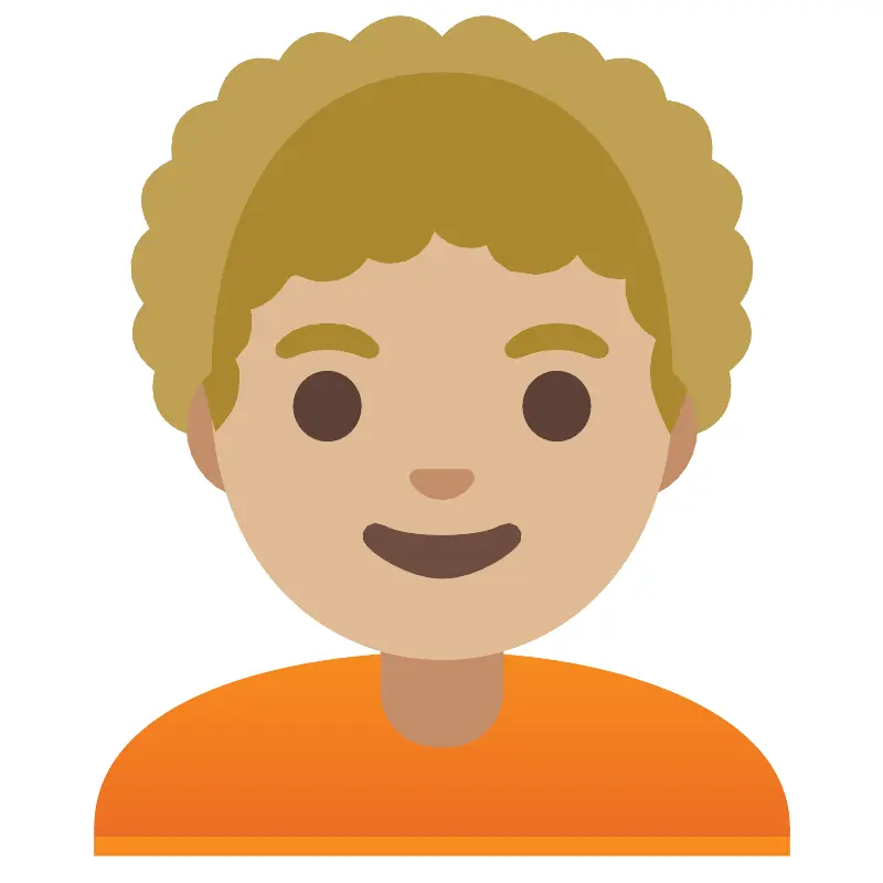 Человек со средним светлым тоном кожи с кудрявыми волосами