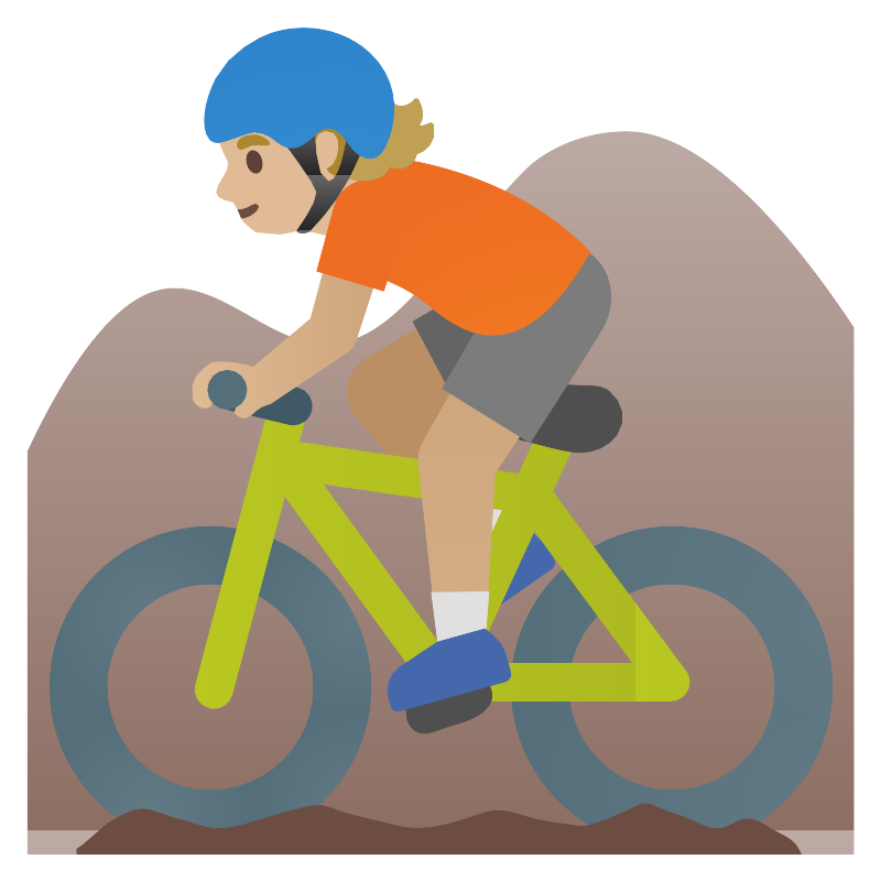 Person mountain biking medium light skin tone