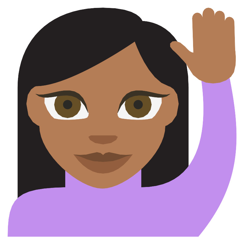 Человек с поднятой рукой средне-тёмная кожа