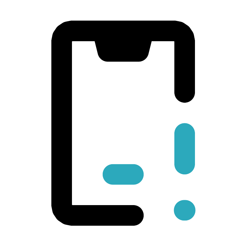 <svg fill="#000000" width="800px" height="800px" viewBox="0 0 24 24" id="phone-error-3" data-name="Line Color" xmlns="http://www.w3.org/2000/svg" class="icon line-color"><path id="secondary" d="M13,17H11m7-4v3" style="fill: none; stroke: rgb(44, 169, 188); stroke-linecap: round; stroke-linejoin: round; stroke-width: 2;"></path><line id="secondary-upstroke" x1="17.95" y1="20.5" x2="18.05" y2="20.5" style="fill: none; stroke: rgb(44, 169, 188); stroke-linecap: round; stroke-linejoin: round; stroke-width: 2;"></line><polygon id="primary" points="14 3 10 3 10.5 5 13.5 5 14 3" style="fill: none; stroke: rgb(0, 0, 0); stroke-linecap: round; stroke-linejoin: round; stroke-width: 2;"></polygon><path id="primary-2" data-name="primary" d="M18,9V4a1,1,0,0,0-1-1H7A1,1,0,0,0,6,4V20a1,1,0,0,0,1,1h6" style="fill: none; stroke: rgb(0, 0, 0); stroke-linecap: round; stroke-linejoin: round; stroke-width: 2;"></path></svg>