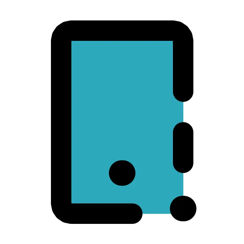 <svg fill="#000000" width="800px" height="800px" viewBox="0 0 24 24" id="phone-error-4" data-name="Flat Line" xmlns="http://www.w3.org/2000/svg" class="icon flat-line"><rect id="secondary" x="6" y="3" width="12" height="18" rx="1" style="fill: rgb(44, 169, 188); stroke-width: 2;"></rect><line id="primary-upstroke" x1="11.95" y1="17" x2="12.05" y2="17" style="fill: none; stroke: rgb(0, 0, 0); stroke-linecap: round; stroke-linejoin: round; stroke-width: 2.5;"></line><path id="primary" d="M13,21H7a1,1,0,0,1-1-1V4A1,1,0,0,1,7,3H17a1,1,0,0,1,1,1V9" style="fill: none; stroke: rgb(0, 0, 0); stroke-linecap: round; stroke-linejoin: round; stroke-width: 2;"></path><line id="primary-2" data-name="primary" x1="18" y1="13" x2="18" y2="16" style="fill: none; stroke: rgb(0, 0, 0); stroke-linecap: round; stroke-linejoin: round; stroke-width: 2;"></line><line id="primary-upstroke-2" data-name="primary-upstroke" x1="17.95" y1="20.5" x2="18.05" y2="20.5" style="fill: none; stroke: rgb(0, 0, 0); stroke-linecap: round; stroke-linejoin: round; stroke-width: 2.5;"></line></svg>