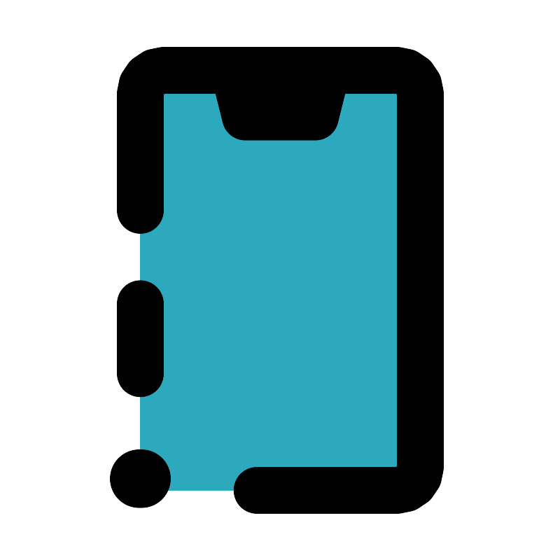<svg fill="#000000" width="800px" height="800px" viewBox="0 0 24 24" id="phone-error-5" data-name="Flat Line" xmlns="http://www.w3.org/2000/svg" class="icon flat-line"><path id="secondary" d="M17,3H14l-.5,2h-3L10,3H7A1,1,0,0,0,6,4V20a1,1,0,0,0,1,1H17a1,1,0,0,0,1-1V4A1,1,0,0,0,17,3Z" style="fill: rgb(44, 169, 188); stroke-width: 2;"></path><path id="primary" d="M6,9V4A1,1,0,0,1,7,3H17a1,1,0,0,1,1,1V20a1,1,0,0,1-1,1H11" style="fill: none; stroke: rgb(0, 0, 0); stroke-linecap: round; stroke-linejoin: round; stroke-width: 2;"></path><polygon id="primary-2" data-name="primary" points="10.5 5 13.5 5 14 3 10 3 10.5 5" style="fill: none; stroke: rgb(0, 0, 0); stroke-linecap: round; stroke-linejoin: round; stroke-width: 2;"></polygon><line id="primary-3" data-name="primary" x1="6" y1="16" x2="6" y2="13" style="fill: none; stroke: rgb(0, 0, 0); stroke-linecap: round; stroke-linejoin: round; stroke-width: 2;"></line><line id="primary-upstroke" x1="6.05" y1="20.5" x2="5.95" y2="20.5" style="fill: none; stroke: rgb(0, 0, 0); stroke-linecap: round; stroke-linejoin: round; stroke-width: 2.5;"></line></svg>