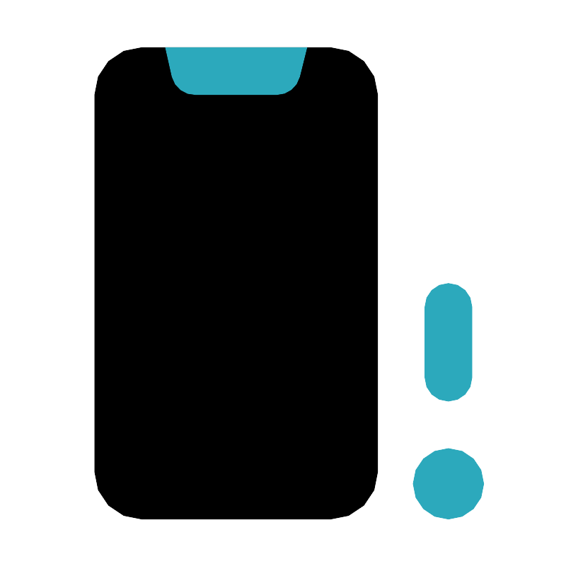<svg fill="#000000" width="800px" height="800px" viewBox="0 0 24 24" id="phone-error" data-name="Flat Color" xmlns="http://www.w3.org/2000/svg" class="icon flat-color"><rect id="primary" x="4" y="2" width="12" height="20" rx="2" style="fill: rgb(0, 0, 0);"></rect><path id="secondary" d="M11.72,4H8.28a1,1,0,0,1-1-.76L7,2h6l-.31,1.24A1,1,0,0,1,11.72,4ZM19,19a1.5,1.5,0,1,0,1.5,1.5A1.5,1.5,0,0,0,19,19Zm1-3V13a1,1,0,0,0-2,0v3a1,1,0,0,0,2,0Z" style="fill: rgb(44, 169, 188);"></path></svg>