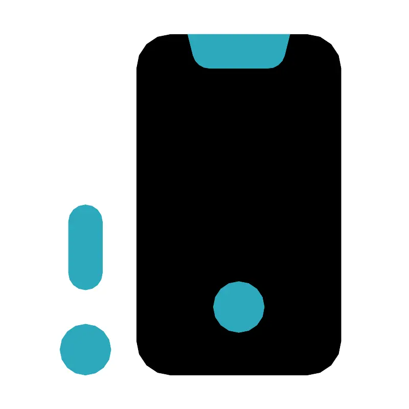 <svg fill="#000000" width="800px" height="800px" viewBox="0 0 24 24" id="phone-error-left-2" data-name="Flat Color" xmlns="http://www.w3.org/2000/svg" class="icon flat-color"><rect id="primary" x="8" y="2" width="12" height="20" rx="2" style="fill: rgb(0, 0, 0);"></rect><path id="secondary" d="M11.31,3.24,11,2h6l-.31,1.24a1,1,0,0,1-1,.76H12.28A1,1,0,0,1,11.31,3.24ZM3.5,20.5A1.5,1.5,0,1,0,5,19,1.5,1.5,0,0,0,3.5,20.5ZM5,17a1,1,0,0,0,1-1V13a1,1,0,0,0-2,0v3A1,1,0,0,0,5,17Zm7.5,1A1.5,1.5,0,1,0,14,16.5,1.5,1.5,0,0,0,12.5,18Z" style="fill: rgb(44, 169, 188);"></path></svg>