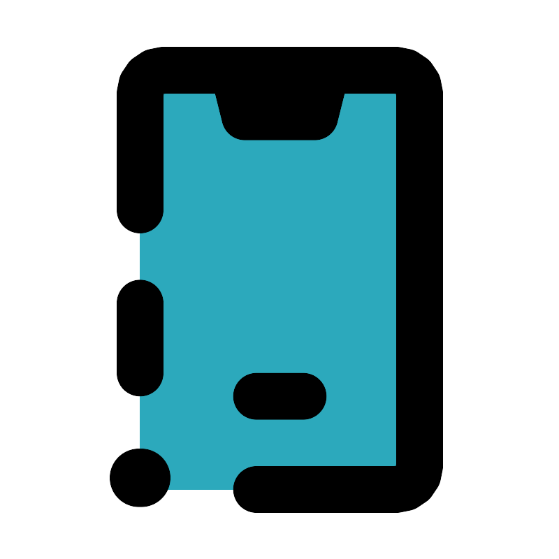 <svg fill="#000000" width="800px" height="800px" viewBox="0 0 24 24" id="phone-error-left-3" data-name="Flat Line" xmlns="http://www.w3.org/2000/svg" class="icon flat-line"><path id="secondary" d="M17,3H14l-.5,2h-3L10,3H7A1,1,0,0,0,6,4V20a1,1,0,0,0,1,1H17a1,1,0,0,0,1-1V4A1,1,0,0,0,17,3Z" style="fill: rgb(44, 169, 188); stroke-width: 2;"></path><path id="primary" d="M11,21h6a1,1,0,0,0,1-1V4a1,1,0,0,0-1-1H7A1,1,0,0,0,6,4V9" style="fill: none; stroke: rgb(0, 0, 0); stroke-linecap: round; stroke-linejoin: round; stroke-width: 2;"></path><path id="primary-2" data-name="primary" d="M11,17h2M10.5,5h3L14,3H10ZM6,13v3" style="fill: none; stroke: rgb(0, 0, 0); stroke-linecap: round; stroke-linejoin: round; stroke-width: 2;"></path><line id="primary-upstroke" x1="6.05" y1="20.5" x2="5.95" y2="20.5" style="fill: none; stroke: rgb(0, 0, 0); stroke-linecap: round; stroke-linejoin: round; stroke-width: 2.5;"></line></svg>