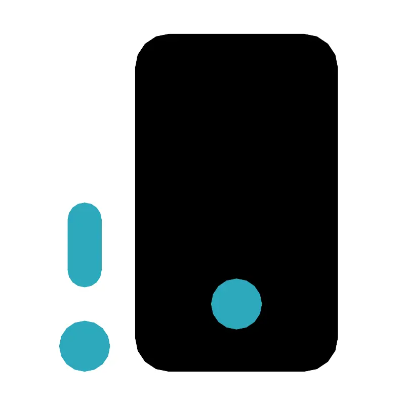 <svg fill="#000000" width="800px" height="800px" viewBox="0 0 24 24" id="phone-error-left-4" data-name="Flat Color" xmlns="http://www.w3.org/2000/svg" class="icon flat-color"><rect id="primary" x="8" y="2" width="12" height="20" rx="2" style="fill: rgb(0, 0, 0);"></rect><path id="secondary" d="M5,19a1.5,1.5,0,1,1-1.5,1.5A1.5,1.5,0,0,1,5,19Zm0-2a1,1,0,0,0,1-1V13a1,1,0,0,0-2,0v3A1,1,0,0,0,5,17Zm7.5,1A1.5,1.5,0,1,0,14,16.5,1.5,1.5,0,0,0,12.5,18Z" style="fill: rgb(44, 169, 188);"></path></svg>