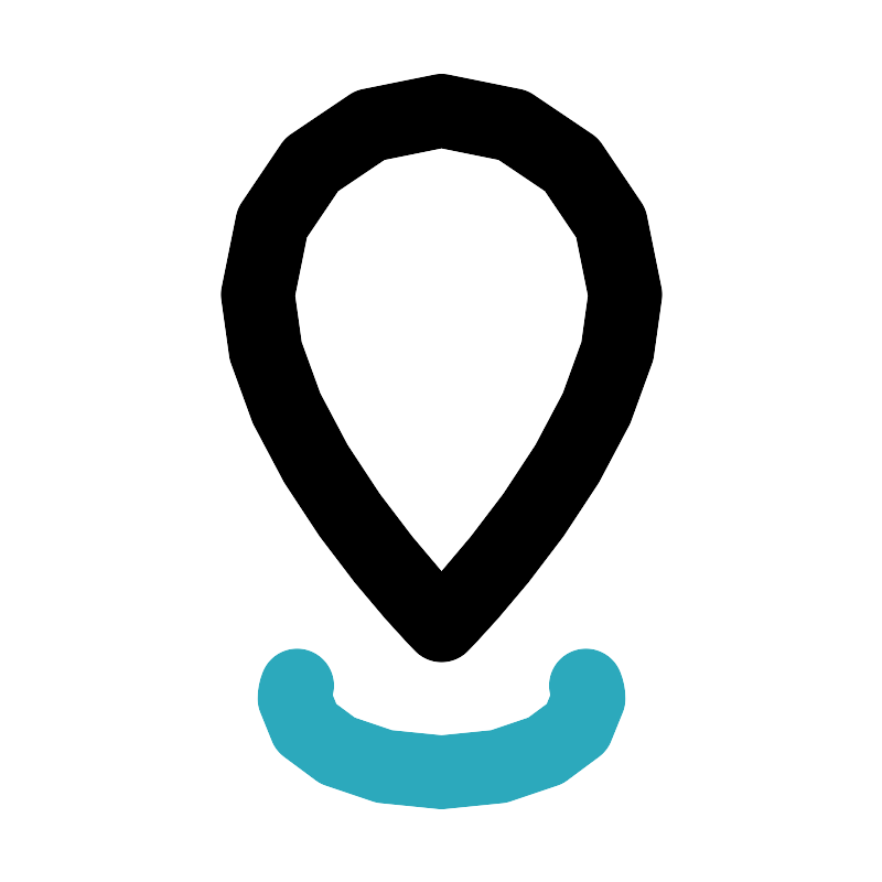 <svg fill="#000000" width="800px" height="800px" viewBox="0 0 24 24" id="pin-drop" data-name="Line Color" xmlns="http://www.w3.org/2000/svg" class="icon line-color"><line id="secondary-upstroke" x1="12" y1="8" x2="12" y2="8" style="fill: none; stroke: rgb(44, 169, 188); stroke-linecap: round; stroke-linejoin: round; stroke-width: 2;"></line><path id="secondary" d="M15.93,18.64A.92.92,0,0,1,16,19c0,1.1-1.79,2-4,2s-4-.9-4-2a.92.92,0,0,1,.07-.36" style="fill: none; stroke: rgb(44, 169, 188); stroke-linecap: round; stroke-linejoin: round; stroke-width: 2;"></path><path id="primary" d="M17,8A5,5,0,0,0,7,8c0,4,5,9,5,9S17,12,17,8Z" style="fill: none; stroke: rgb(0, 0, 0); stroke-linecap: round; stroke-linejoin: round; stroke-width: 2;"></path></svg>