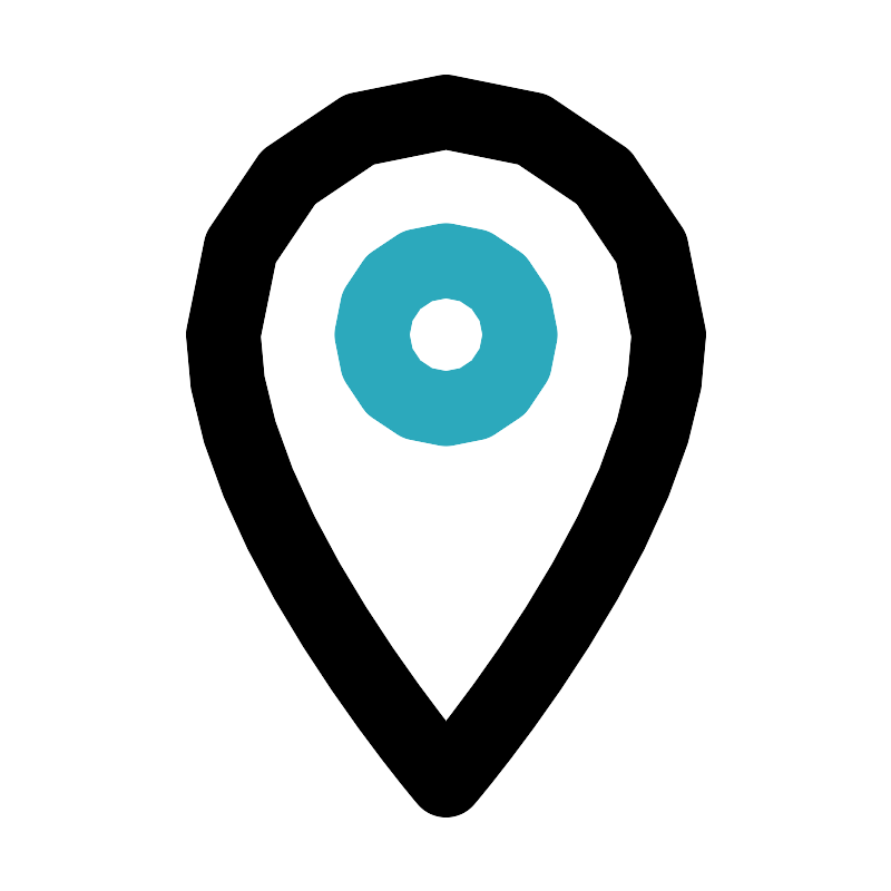 <svg fill="#000000" width="800px" height="800px" viewBox="0 0 24 24" id="place" data-name="Line Color" xmlns="http://www.w3.org/2000/svg" class="icon line-color"><circle id="secondary" cx="12" cy="9" r="2" style="fill: none; stroke: rgb(44, 169, 188); stroke-linecap: round; stroke-linejoin: round; stroke-width: 2;"></circle><path id="primary" d="M12,21S6,14,6,9A6,6,0,0,1,18,9C18,14,12,21,12,21Z" style="fill: none; stroke: rgb(0, 0, 0); stroke-linecap: round; stroke-linejoin: round; stroke-width: 2;"></path></svg>