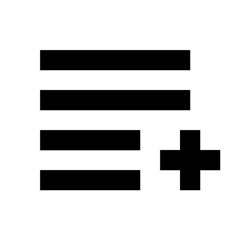 <path fill-rule="evenodd" d="M18,17 L16,17 L16,15 L18,15 L18,13 L20,13 L20,15 L22,15 L22,17 L20,17 L20,19 L18,19 L18,17 Z M4,19 L4,17 L14,17 L14,19 L4,19 Z M4,15 L4,13 L14,13 L14,15 L4,15 Z M4,11 L4,9 L19,9 L19,11 L4,11 Z M4,7 L4,5 L19,5 L19,7 L4,7 Z"/>