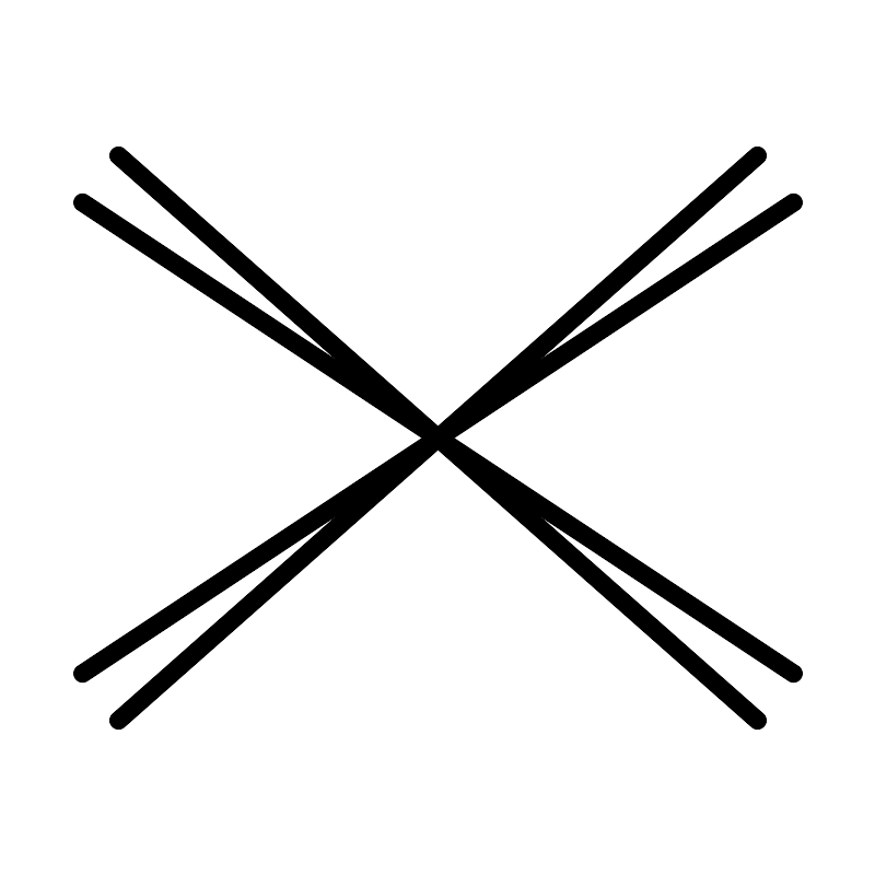 <svg width="800px" height="800px" viewBox="0 0 48 48" xmlns="http://www.w3.org/2000/svg"><defs><style>.a{fill:none;stroke:#000000;stroke-linecap:round;stroke-linejoin:round;}</style></defs><line class="a" x1="6.4744" y1="8.5081" x2="41.525" y2="39.4919"/><line class="a" x1="41.525" y1="8.5081" x2="6.4744" y2="39.4919"/><line class="a" x1="43.5" y1="11.0818" x2="4.5" y2="36.9182"/><line class="a" x1="43.5" y1="36.9182" x2="4.5" y2="11.0818"/></svg>