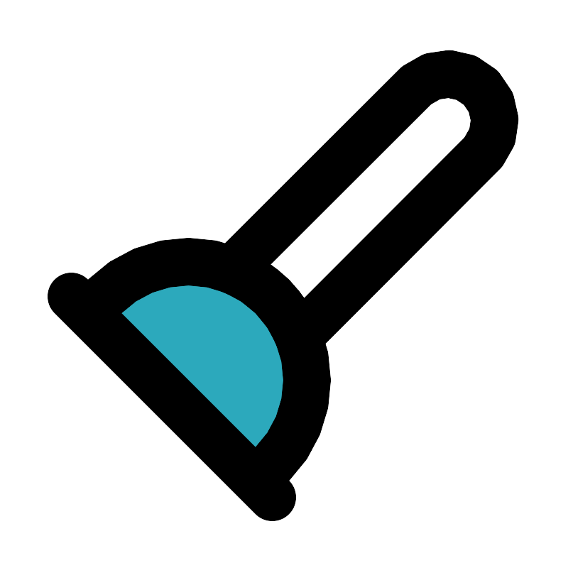 <svg fill="#000000" width="800px" height="800px" viewBox="0 0 24 24" id="plunger-2" data-name="Flat Line" xmlns="http://www.w3.org/2000/svg" class="icon flat-line"><path id="secondary" d="M9.36,11.64h0a5,5,0,0,1,5,5v1a0,0,0,0,1,0,0h-10a0,0,0,0,1,0,0v-1A5,5,0,0,1,9.36,11.64Z" transform="translate(13.09 -2.33) rotate(45)" style="fill: rgb(44, 169, 188); stroke-width: 2;"></path><path id="primary" d="M11.49,12.51a5,5,0,0,1,1.11,1.72l7.81-7.82a2,2,0,0,0-2.82-2.82L9.77,11.4A5,5,0,0,1,11.49,12.51Z" style="fill: none; stroke: rgb(0, 0, 0); stroke-linecap: round; stroke-linejoin: round; stroke-width: 2;"></path><path id="primary-2" data-name="primary" d="M10.78,20.29,3.71,13.22l.7-.71a5,5,0,0,1,7.08,0h0a5,5,0,0,1,0,7.08ZM3,12.51,11.49,21" style="fill: none; stroke: rgb(0, 0, 0); stroke-linecap: round; stroke-linejoin: round; stroke-width: 2;"></path></svg>