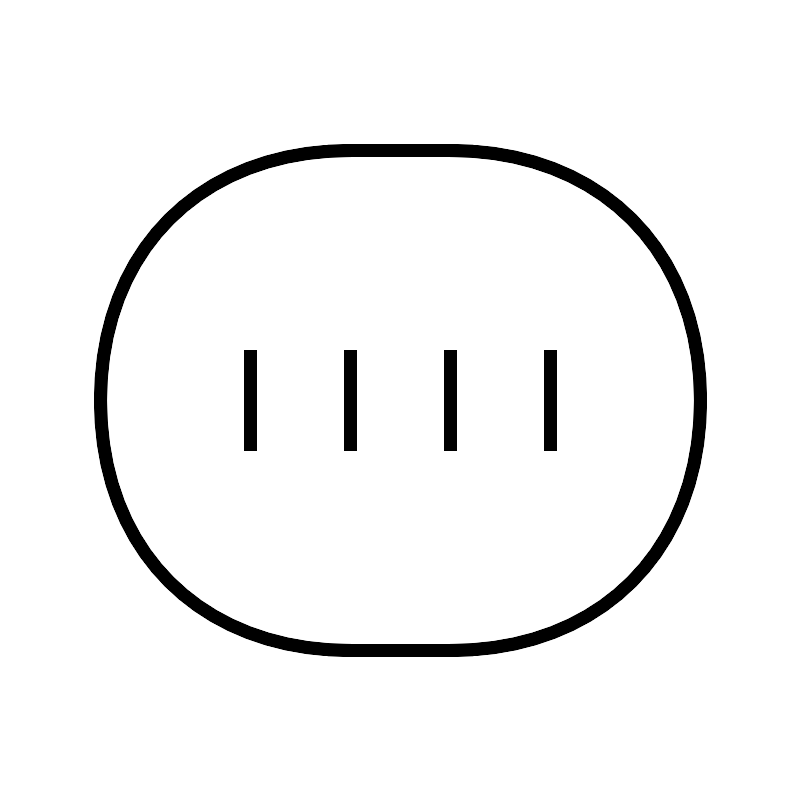<svg width="800px" height="800px" viewBox="0 0 64 64" xmlns="http://www.w3.org/2000/svg" fill="none" stroke="#000000"><line x1="20" y1="28" x2="20" y2="36"/><line x1="44" y1="28" x2="44" y2="36"/><line x1="36" y1="28" x2="36" y2="36"/><line x1="28" y1="28" x2="28" y2="36"/><path d="M36 52h-8C16 52 8 44 8 32s8-20 20-20h8c12 0 20 8 20 20s-8 20-20 20z"/></svg>