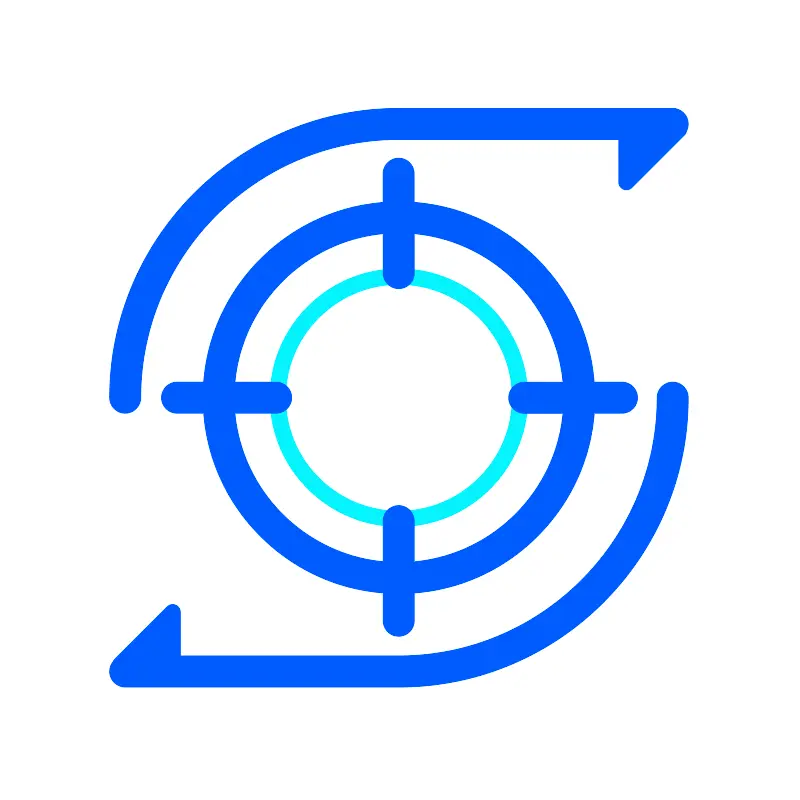 <svg width="800px" height="800px" viewBox="0 0 1024 1024" class="icon" version="1.1" xmlns="http://www.w3.org/2000/svg"><path d="M510 508.4m-210.8 0a210.8 210.8 0 1 0 421.6 0 210.8 210.8 0 1 0-421.6 0Z" fill="#E6E6E6" /><path d="M510 363.4c-80 0-145 65.1-145 145s65.1 145 145 145 145-65.1 145-145-65-145-145-145z" fill="#FFFFFF" /><path d="M510 343.4c-91 0-165 74-165 165s74 165 165 165 165-74 165-165-74-165-165-165z m0 310.1c-80 0-145-65.1-145-145s65.1-145 145-145 145 65.1 145 145-65 145-145 145z" fill="#06F3FF" /><path d="M795.4 488.4H760c-4.7-59.5-30-114.7-72.7-157.4s-98.1-68.1-157.7-72.7v-36.6c0-11-9-20-20-20s-20 9-20 20v36.7c-59.3 4.7-114.5 30.1-157 72.6-42.6 42.6-68 97.9-72.7 157.4H226c-11 0-20 9-20 20s9 20 20 20h34c4.7 59.5 30 114.7 72.7 157.4 42.5 42.5 97.7 67.9 157 72.6v35.5c0 11 9 20 20 20s20-9 20-20v-35.4c59.6-4.6 115-30 157.7-72.7 42.6-42.6 68-97.9 72.7-157.4h35.4c11 0 20-9 20-20s-9-20-20.1-20zM529.7 718.3v-51.9c0-11-9-20-20-20s-20 9-20 20v51.8c-100.1-9.6-180-89.6-189.5-189.8h52.6c11 0 20-9 20-20s-9-20-20-20h-52.6c9.5-100.2 89.4-180.2 189.5-189.8v50.3c0 11 9 20 20 20s20-9 20-20v-50.3c100.5 9.3 180.7 89.5 190.2 189.9h-49.5c-11 0-20 9-20 20s9 20 20 20h49.5c-9.5 100.4-89.8 180.5-190.2 189.8z" fill="#005BFF" /><path d="M880.4 158c0-11-9-20-20-20H510c-50 0-98.5 9.8-144.2 29.1-44.1 18.7-83.7 45.4-117.7 79.4-34 34-60.7 73.6-79.4 117.7-19.3 45.7-29.1 94.2-29.1 144.2 0 11 9 20 20 20s20-9 20-20C179.6 326.2 327.8 178 510 178h281.3v54.5c0 8.9 10.7 13.3 17 7l67.1-67.1c1.6-1.6 2.5-3.4 2.8-5.3 1.4-2.7 2.2-5.8 2.2-9.1zM860.4 488.4c-11 0-20 9-20 20 0 182.2-148.2 330.4-330.4 330.4H230.3V783c0-8.9-10.7-13.3-17-7l-67.1 67.1c-1 1-1.8 2.2-2.3 3.4-2.7 3.4-4.3 7.7-4.3 12.4 0 11 9 20 20 20H510c50 0 98.5-9.8 144.2-29.1 44.1-18.7 83.7-45.4 117.7-79.4 34-34 60.7-73.6 79.4-117.7 19.3-45.7 29.1-94.2 29.1-144.2 0-11.1-8.9-20.1-20-20.1z" fill="#005BFF" /></svg>