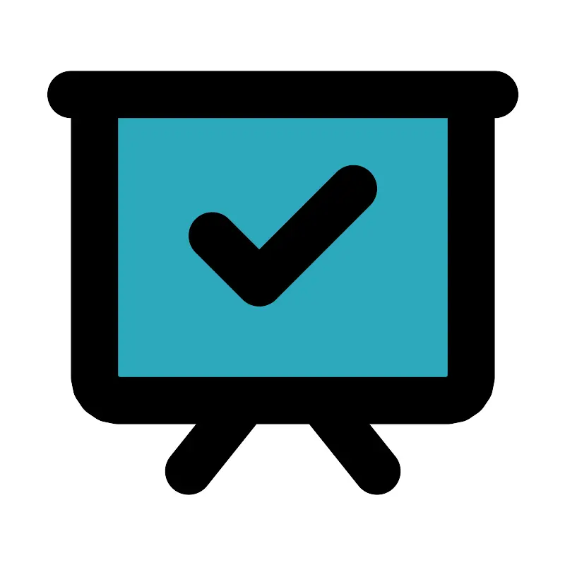 <svg fill="#000000" width="800px" height="800px" viewBox="0 0 24 24" id="present-check" data-name="Flat Line" xmlns="http://www.w3.org/2000/svg" class="icon flat-line"><path id="secondary" d="M4,4H20a0,0,0,0,1,0,0V16a1,1,0,0,1-1,1H5a1,1,0,0,1-1-1V4A0,0,0,0,1,4,4Z" style="fill: rgb(44, 169, 188); stroke-width: 2;"></path><polyline id="primary" points="9 10 11 12 15 8" style="fill: none; stroke: rgb(0, 0, 0); stroke-linecap: round; stroke-linejoin: round; stroke-width: 2;"></polyline><path id="primary-2" data-name="primary" d="M19,17H5a1,1,0,0,1-1-1V4H20V16A1,1,0,0,1,19,17ZM3,4H21M10.4,17,8,20m5.6-3L16,20" style="fill: none; stroke: rgb(0, 0, 0); stroke-linecap: round; stroke-linejoin: round; stroke-width: 2;"></path></svg>