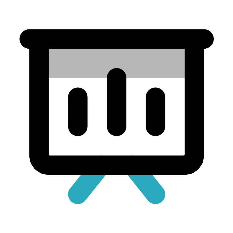<svg width="800px" height="800px" viewBox="0 0 24 24" id="present-line" xmlns="http://www.w3.org/2000/svg" class="icon multi-color"><title style="stroke-width: 2;">present line</title><path id="secondary-stroke" d="M10.4,17,8,20m5.6-3L16,20" style="fill: none; stroke: rgb(44, 169, 188); stroke-linecap: round; stroke-linejoin: round; stroke-width: 2;"></path><rect id="tertiary-fill" x="4" y="4" width="16" height="4" style="fill: #b7b7b7; stroke-width: 2;"></rect><path id="primary-stroke" d="M19,17H5a1,1,0,0,1-1-1V4H20V16A1,1,0,0,1,19,17ZM3,4H21m-9,9V8m4,5V10M8,13V10" style="fill: none; stroke: rgb(0, 0, 0); stroke-linecap: round; stroke-linejoin: round; stroke-width: 2;"></path></svg>